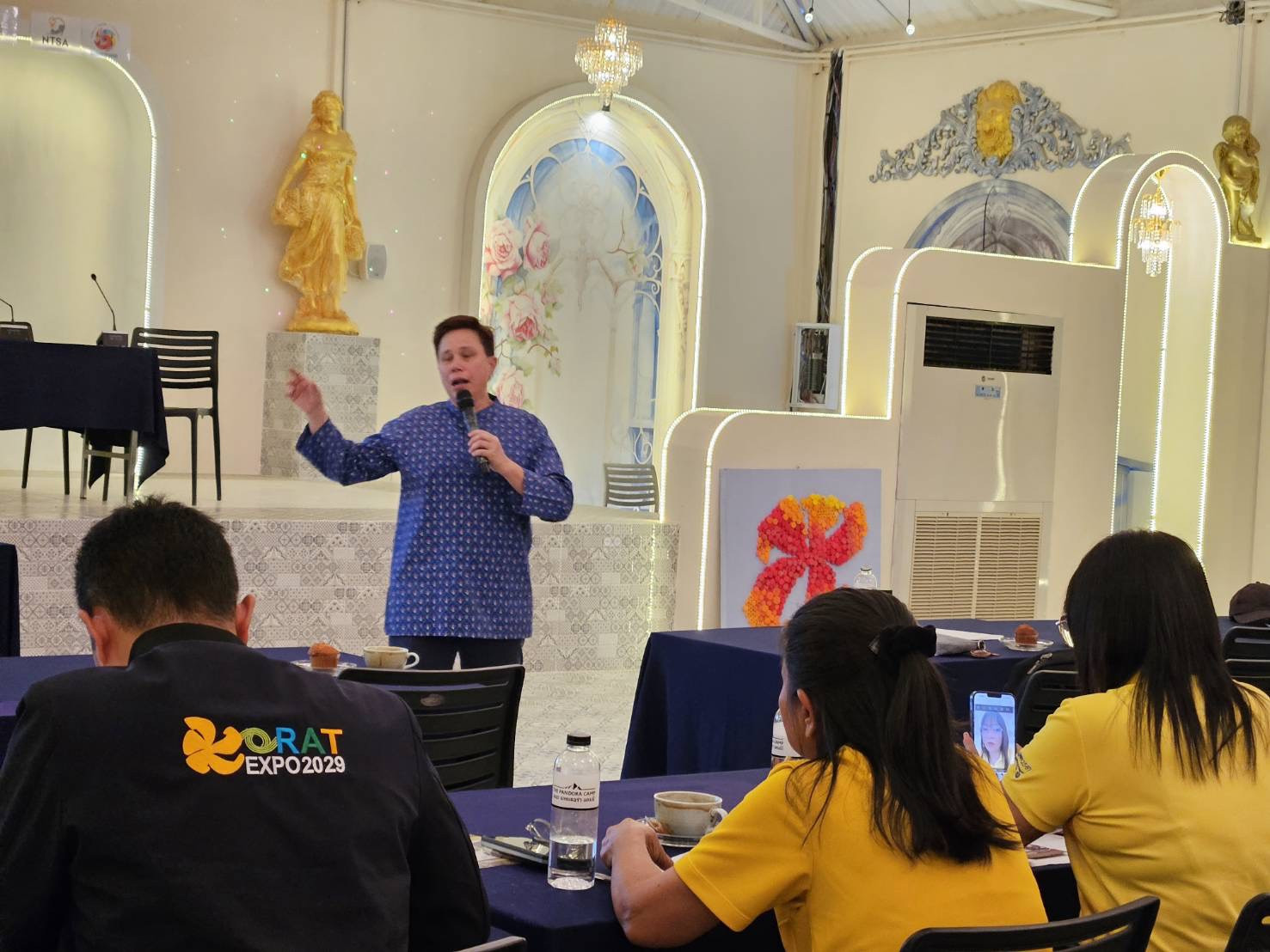 “ขอบคุณวิทยากรทุกท่านที่จะมาจัดเต็มทั้ง 3 วัน เพื่อเรียนรู้ แลกเปลี่ยนสร้างสรรค์กิจกรรมไมซ์และท่องเที่ยวยั่งยืน เพื่อเตรียมพร้อมสู่งานโคราชเอ็กซ์โป 2029 สิ่งที่เราสนใจที่สุดคือการเคลื่อนเมืองด้วยคน ทรัพยากรมนุษย์เป็นสิ่งที่สำคัญที่สุด งานเอ็กซ์โปใดๆ ที่จัดมาเป็นร้อยๆ ปี มิอาจเคลื่อนได้ด้วยสิ่งก่อสร้างเพียงอย่างเดียว แต่สิ่งที่เติบโตไปพร้อมกับเมืองคือ “คน” ทั้งสิ้น ซึ่งคนคือทรัพยากรที่สำคัญที่สุดในการสร้างความยั่งยืนให้กับเมืองและโลกของเรา ซึ่งสมาคมท่องเที่ยวเขาใหญ่และภาคีสมาชิกทุกคนตั้งใจเชิญวิทยากรที่มีความสามารถมาถ่ายทอดประสบการณ์ของแต่ละคนให้พวกเราได้เรียนรู้และรับฟัง”