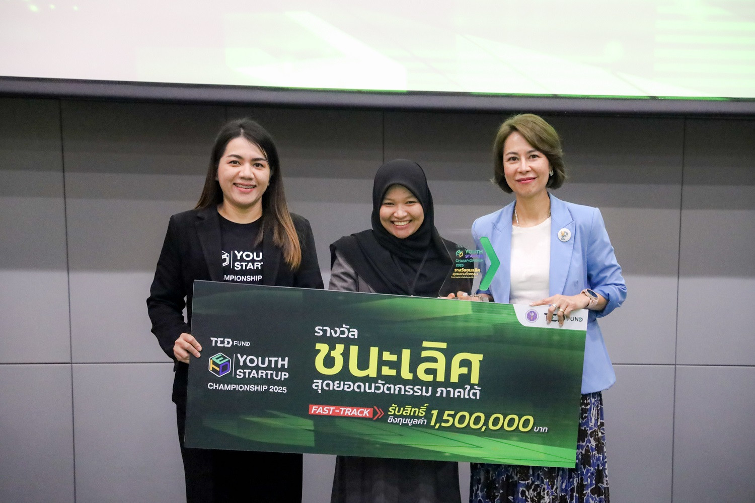 สำหรับผลการแข่งขันสุดยอดนวัตกรรม TED Youth Startup Championship 2025 ภาคใต้ ได้แก่ รางวัลชนะเลิศ ทีม Bac-Tech ฟิล์มสเปรย์ฆ่าเชื้อ และสมานแผล จาก TED Fellow อุทยานวิทยาศาสตร์และเทคโนโลยี มหาวิทยาลัยวลัยลักษณ์, รางวัลรองชนะเลิศอันดับ 1 ทีม COATIMED ซิลิโคนเคลือบยาแบบสลายตัวได้ จาก TED Fellow ศูนย์บ่มเพาะวิสาหกิจ อุทยานวิทยาศาสตร์ มหาวิทยาลัยสงขลานครินทร์, รางวัลรองชนะเลิศอันดับ 2 ทีม ระบบนำวิถีแบบไดนามิคสำหรับช่วยผ่าตัดรากฟันเทียม จาก TED Fellow ศูนย์บ่มเพาะวิสาหกิจ อุทยานวิทยาศาสตร์ มหาวิทยาลัยสงขลานครินทร์ และรางวัล Popular Vote ทีม Pen Cha : ผลิตภัณฑ์ชาไทยเม็ดฟู่ จาก TED Fellow ศูนย์บ่มเพาะวิสาหกิจ มหาวิทยาลัยหาดใหญ่ จากทีมที่เข้าร่วมแข่งขันจำนวน 6 ทีม โดยทีมที่ได้รับทั้ง 3 รางวัลนี้ ยังได้รับสิทธิ์ Fast-track ในการเข้าไปนำเสนอนวัตกรรมในรอบถัดไป เพื่อชิงทุนมูลค่า 1,500,000 บาท อีกด้วย