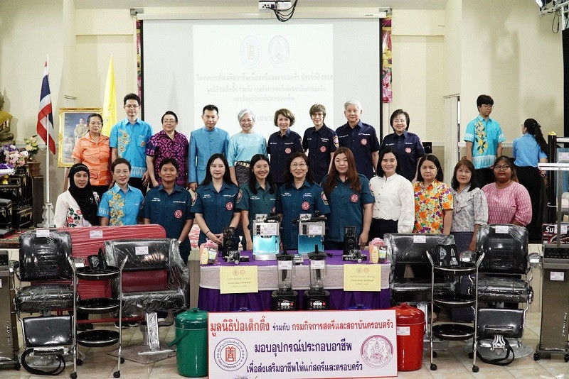 enjoyjam.net » news & activity » news & activity (Moderators: happy, sianbun) » มูลนิธิป่อเต็กตึ๊ง สร้างอาชีพ สร้างชีวิต มอบอุปกรณ์ประกอบอาชีพแก่สตรี « previous next » Print Pages: [1] Go Down happy on April 18, 2025, 04:09:47 PM มูลนิธิป่อเต็กตึ๊ง สร้างอาชีพ สร้างชีวิต มอบอุปกรณ์ประกอบอาชีพแก่สตรี แม่เลี้ยงเดี่ยวหรือด้อยโอกาส ในพื้นที่จังหวัดชลบุรี พร้อมมอบรถเข็นวีลแชร์แก่ผู้พิการด้อยโอกาส มอบจักรยานให้แก่โรงเรียนในพื้นที่ชนบท และนำหน่วยแพทย์เคลื่อนที่ออกบริการประชาชนฟรีวันนี้ (วันศุกร์ที่ 18 เมษายน พ.ศ. 2568) มูลนิธิป่อเต็กตึ๊ง นำโดย นางศิริกุล โอภาสวงศ์ กรรมการและเลขาธิการ พร้อมด้วย นายจารุรัตน์ คุณัตถานนท์ กรรมการและเหรัญญิก นางชุติมา ตันติศิริวัฒน์ ผู้ช่วยกรรมการ นางสาวดวงชุตา ติยะพจนพรกุล ผู้ช่วยผู้จัดการฝ่ายสังคมสงเคราะห์ นางสาวศุภรัตน์ สมบัติเจริญไทย หัวหน้าแผนกส่งเสริมการศึกษาและอาชีพ และ นางสาวเนาวรัตน์ วรรณศิริ หัวหน้าแผนกหน่วยแพทย์สงเคราะห์ชุมชน นำทีมลงพื้นที่จังหวัดชลบุรี มอบวัสดุอุปกรณ์ประกอบอาชีพให้แก่สตรีที่มีรายได้น้อยมีภาระหน้าที่ดูแลคนในครอบครัว เป็นแม่เลี้ยงเดี่ยว หรือด้อยโอกาสทางสังคม มีความรู้ความสามารถ แต่ขาดแคลนวัสดุอุปกรณ์ประกอบอาชีพ จำนวน 6 ราย พร้อมมอบรถเข็นวีลแชร์แก่ผู้พิการด้อยโอกาส จำนวน 10 ราย และมอบจักรยาน แก่โรงเรียนชนบทที่ขาดแคลน จำนวน 2 โรงเรียน รวมจำนวน 20 คัน พร้อมกระบอกน้ำขนาด 1 ลิตร รวมมูลค่าการดำเนินการช่วยเหลือชาวชลบุรีในครั้งนี้ทั้งสิ้น 184,072 บาท (หนึ่งแสนหนึ่งหมื่นแปดพันห้าร้อยยี่สิบบาทถ้วน) พร้อมกันนี้ มูลนิธิป่อเต็กตึ๊ง ได้นำทีมหน่วยแพทย์ฯ ลงพื้นที่ให้บริการประชาชนฟรี ประกอบด้วย บริการตรวจรักษาโรคทั่วไป จ่ายยา ตรวจวัดสายตาพร้อมแจกแว่น ฯลฯ โดยมี นายพงศ์ธสิษฐ์ ปิจนันท์ รองผู้ว่าราชการจังหวัดชลบุรี พร้อมด้วย นางสาวแรมรุ้ง วรวัธ อธิบดีกรมกิจการสตรีและสถาบันครอบครัว นายนัธทวัฒน์ ธนโชติชัยพัชร์ ผู้อำนวยการศูนย์เรียนรู้การพัฒนาสตรีและครอบครัวเฉลิมพระเกียรติสมเด็จพระเทพฯ 36 พรรษา จังหวัดชลบุรี และนางสาวอัญชลี จงคดีกิจ (ปุ๊-อัญชลี) อาสาสมัครศิลปินมูลนิธิป่อเต็กตึ๊ง ร่วมในพิธี ณ ศูนย์เรียนรู้การพัฒนาสตรีและครอบครัวเฉลิมพระเกียรติสมเด็จพระเทพฯ 36 พรรษา จังหวัดชลบุรีนางศิริกุล โอภาสวงศ์ กรรมการและเลขาธิการ เปิดเผยว่า โครงการส่งเสริมอาชีพเพื่อสตรีและครอบครัว มูลนิธิป่อเต็กตึ๊ง มีวัตถุประสงค์เพื่อมอบวัสดุอุปกรณ์ประกอบอาชีพ แก่ สตรี บุรุษ พ่อเลี้ยงเดี่ยว หรือผู้ที่มีความหลากหลายทางเพศ ที่มีความรู้และความสามารถ ฐานะยากจน ขาดแคลนวัสดุอ