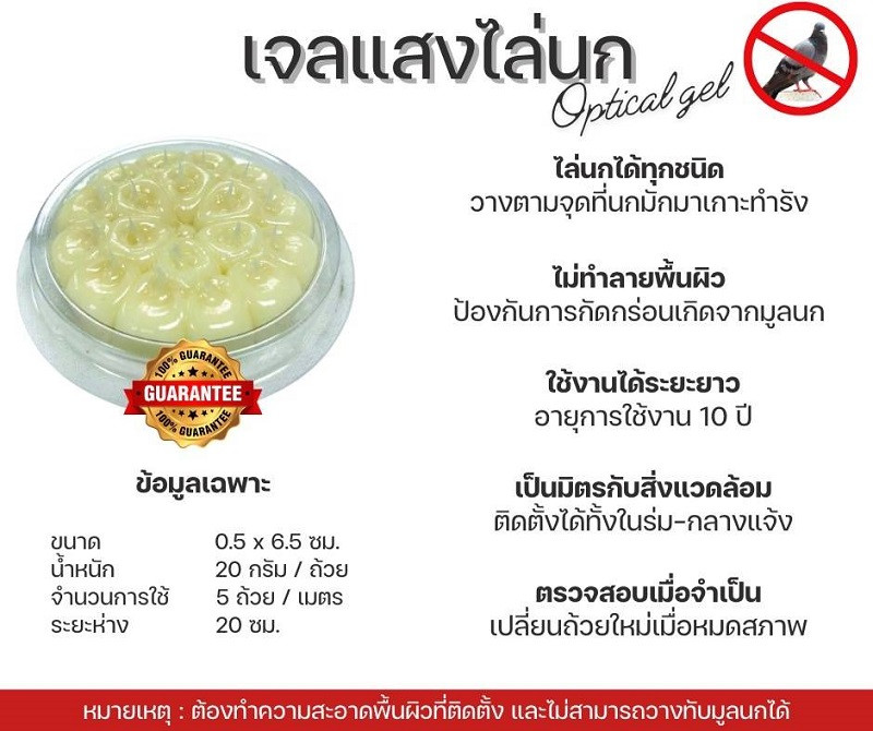 enjoyjam.net » news & activity » news & activity (Moderators: happy, sianbun) » Optical gel เจลแสงไล่นก ผลิตภัณฑ์ออแกนิก ไล่นกพิราบ « previous next » Print Pages: [1] Go Down happy on May 08, 2025, 09:03:45 PM Optical gel เจลแสงไล่นก ผลิตภัณฑ์ออแกนิก ไล่นกพิราบ “ทุกชีวิต อยู่ร่วมกันได้ โดยไม่เบียดเบียน” นกพิราบสามารถขยายพันธุ์ออกไปตามพื้นที่ต่าง ๆ ทั่วประเทศ เนื่องด้วยไทยเป็นประเทศเกษตรกรรม ทำให้ยากในการควบคุม หรือกำจัดให้หมดไป ปัจจุบันนกเข้ามาอาศัยอยู่ในเมืองมากขึ้น ซึ่งพบเห็นได้ทั่วไปตาม บ้าน คอนโด อาคารสำนักงาน โรงเรียน หรือวัด พิพิธภัณฑ์ โบราณสถาน สถาปัตยกรรมต่าง ๆ ที่เป็นแหล่งอนุรักษ์วัฒนธรรมอันดีงามของไทย และมีคุณค่าทางประวัติศาสตร์ หลายคนอาจคาดไม่ถึงว่านกพิราบเป็นภัยร้ายที่นำอันตรายมาสู่คน ฝุ่นละอองจากมูลนกที่ฟุ้งกระจายเมื่อเราสูดดม สามารถแพร่เชื้อโรคโดยตรงสู่สมอง ทางเดินหายใจ ภูมิแพ้ ผิวหนัง เป็นโรคไข้หวัดนก หรือแม้กระทั่งทำความสกปรก ต่ออาคาร สถานที่ อีกทั้งมูลนกยังมีฤทธิ์กัดกร่อนสี โลหะ อาคาร โครงสร้างต่าง ๆ คุณนิธิมา ทุมมี กรรมการผู้จัดการ บริษัท เพสท์ อเวย์ (ประเทศไทย) จำกัด ผู้เชี่ยวชาญในงานบริการไล่นกกว่า 10 ปี กล่าวว่า นกพิราบเป็นปัญหาที่กวนใจคนไทยมาอย่างยาวนาน ซึ่งอุปกรณ์ป้องกันนกในท้องตลาดไม่ได้ช่วยป้องกันนกพิราบได้อย่างตรงจุดและยั่งยืน หรือเพียงทำให้นกตกใจชั่วคราวเท่านั้น ด้วยเหตุนี้บริษัทฯ ได้เล็งเห็นถึงปัญหาของอุปกรณ์ในการป้องกันนกพิราบที่ก่อให้เกิดปัญหาภาพลักษณ์ของสถาปัตยกรรมต่าง ๆ และด้านสุขภาพ สุขอนามัย และผลกระทบต่อสิ่งแวดล้อม ด้วยความรักในธรรมชาติ และหลักคิดของตนเองที่ว่า “ทุกชีวิต อยู่ร่วมกันได้ โดยไม่เบียดเบียน” จึงอาสาเป็นส่วนหนึ่งในการรักษาสมดุลระหว่างคน และนกให้อยู่ร่วมกันได้ โดยไม่เบียดเบียนชีวิตซึ่งกันและกัน โดยนำเข้าผลิตภัณฑ์ที่เป็นเทคโนโลยีป้องกันนกที่เรียกว่า “เจลแสงไล่นก (Optical gel) และเป็นนวัตกรรมทำจากธรรมชาติ 100% เจ้าแรกและเจ้าเดียวในประเทศไทย ที่ก้าวล้ำนำสมัยในธุรกิจป้องกันนก เจลแสงไล่นก เป็นนวัตกรรมระดับโลก ผลิตจากไขของน้ำมันสมุนไพร (Organic) เป็นมิตรกับสิ่งแวดล้อม Net Zero มีอายุการใช้งานยาวนานถึง 10 ปี ติดตั้งได้ทั้งในร่ม-กลางแจ้ง ไม่บดบังทัศนียภาพ ขนาด 5 เซนติเมตรสามารถซ่อนสายตาในการมองได้เป็นอย่างดี ปลอดภัยต่อคนและสัตว์เลี้ยง ไล่นกได้ทุกชนิด รวมถึงค้างคาว นอกจากนี้ยังทนทุกสภาพอากาศ แม้แดดแรงเพียงใด หรือฝนตกหนักแค่ไหน ก็ไม่ทำให้เนื้อเจลเสียสภาพได้ และเป็นผลิตภัณฑ์เดียวในท้องตลาดที่กล้ารับประกันผลงานและประสิทธิภาพถึง 2 ปี (2 years warranty) ซึ่งไม