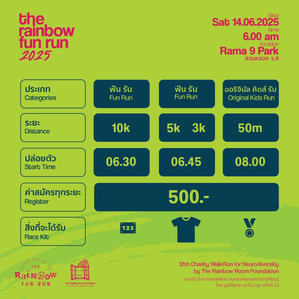 งานเดิน-วิ่งการกุศลเพื่อความหลากหลายทางการเรียนรู้ โดย มูลนิธิเดอะ เรนโบว์ รูม
