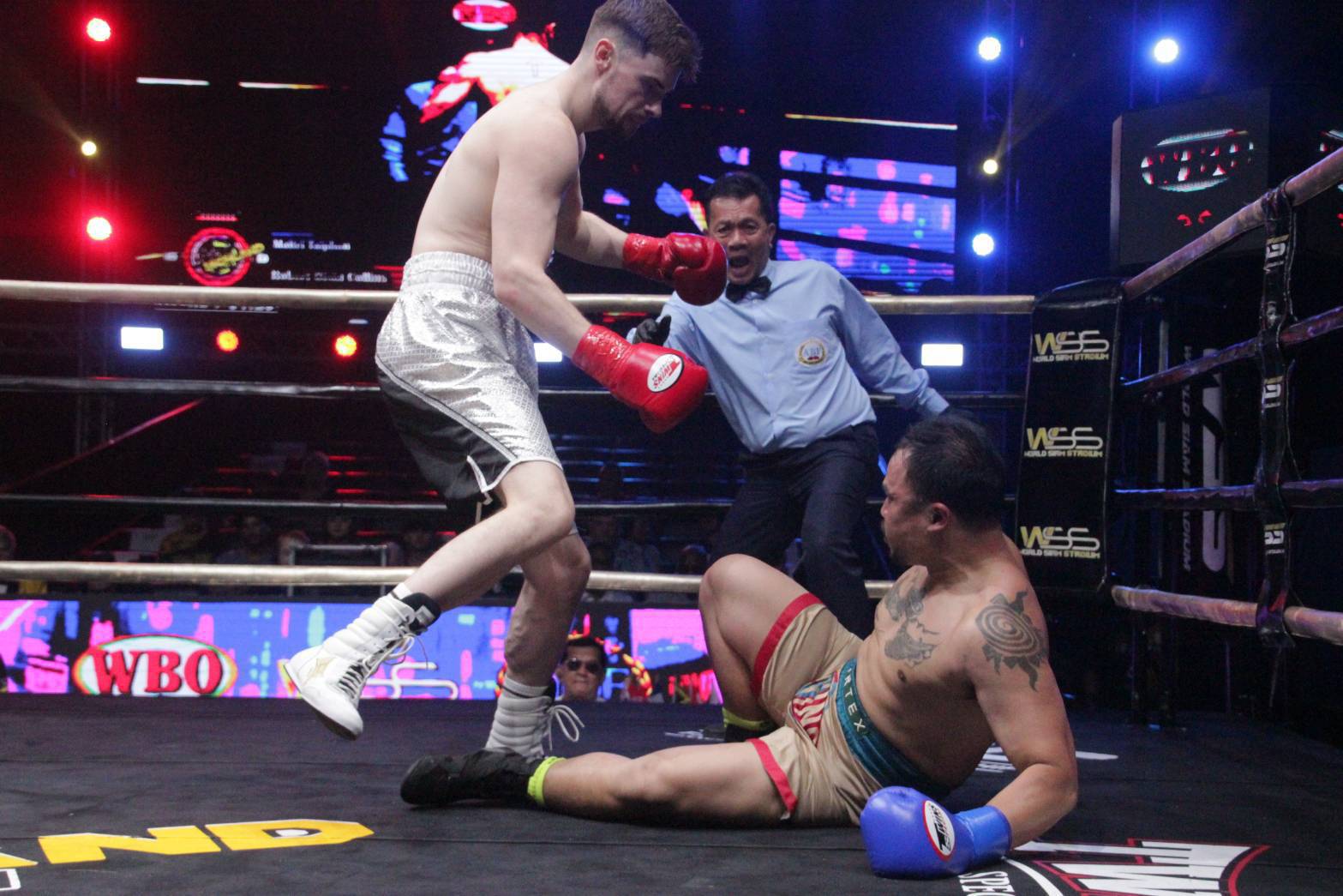 คู่ที่ 8. ชกอุ่นเครื่อง 4 ยก รุ่นครุยเซอร์เวท พิกัด 200 ปอนด์ โรเอิร์ท โอซิน นักชกไฮร์แลนด์ ชนะTKO ยก 1 ไมตรี ไทพัน นักชกไทย