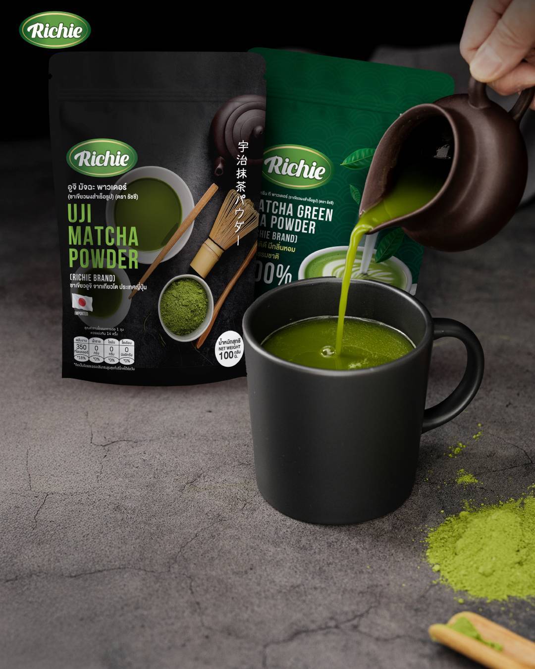 พร้อมกันนี้ชูความเป็นผู้นำ และ เป็นผู้เชี่ยวชาญการนำเข้าวัตถุดิบจากประเทศญี่ปุ่น โฟกัส Matcha Series เน้นขยายการเข้าถึงกลุ่มตลาดชาเขียวผ่านแบรนด์ Richie ชูความออริจินัล แพคเกจพรีเมียม เพียงเปิดซองคุณจะได้สัมผัส กลิ่นหอมของ ใบชาแท้ สีสวย วัตถุดิบแท้100% นำเข้าจากประเทศญี่ปุ่น เป็นชาเขียวผงสกัดที่นำไปใช้ได้ทุกความต้องการ Matcha Series ของเรามีจำนวน 2 ชนิด คือ Uji Matcha Powder ผงชาเขียวคุณภาพสูงที่ผลิตจากเมืองอุจิ (Uji) จังหวัดเกียวโต ประเทศญี่ปุ่น โดยเป็นที่ยอมรับกันว่าเป็นมัทฉะที่ดีที่สุด และ ใช้เยอะในกลุ่มอุตสาหกรรมอาหารเครื่องดื่ม และ อีก1 ประเภทคือ Matcha Green Tea Powder ผงชาเขียวแท้จากญี่ปุ่น แบบบดละเอียดเลือกแต่ยอดใบชาต้นอ่อน นิยมใช้ในกลุ่มคาเฟ่ ร้านเครื่องดื่ม เบเกอรี่ต่างๆ