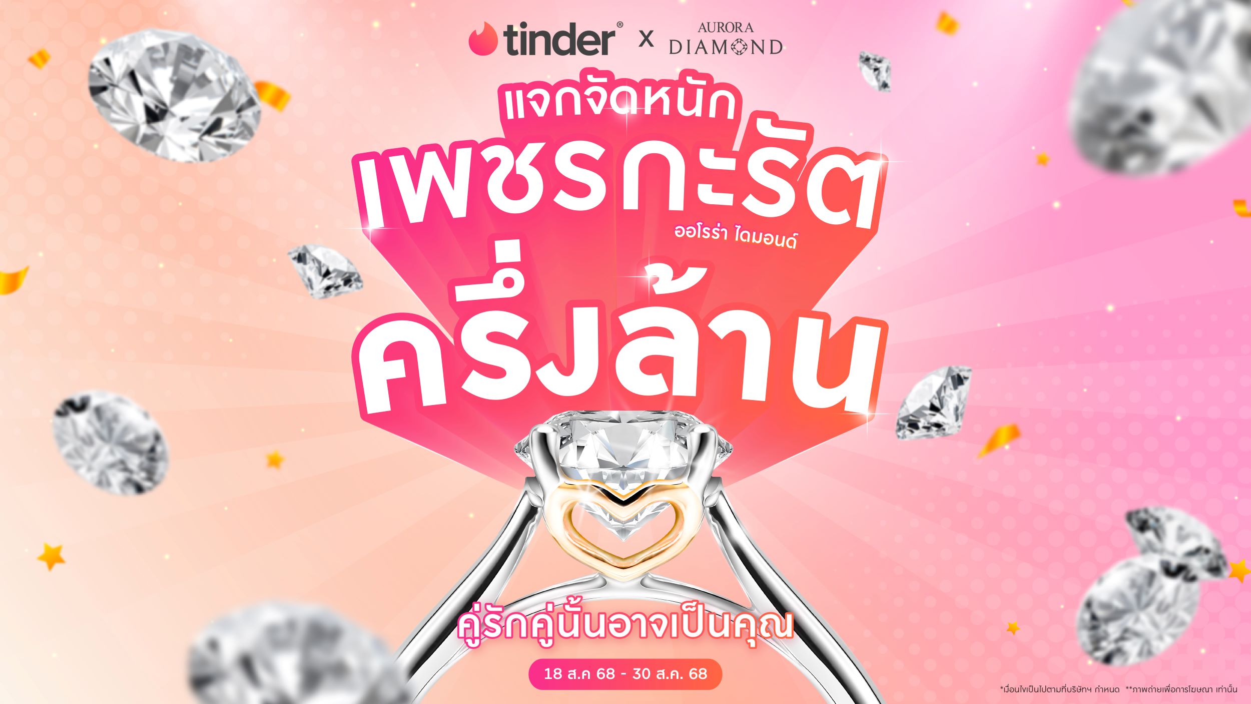 TinderⓇ x Aurora Diamond เมื่อสองยักษ์ใหญ่แท็กทีม ขอเป็น "เฒ่าแก่" แจกเพชรกะรัตครึ่งล้าน เพื่อสนับสนุนความรักที่เริ่มต้นผ่านโลกออนไลน์