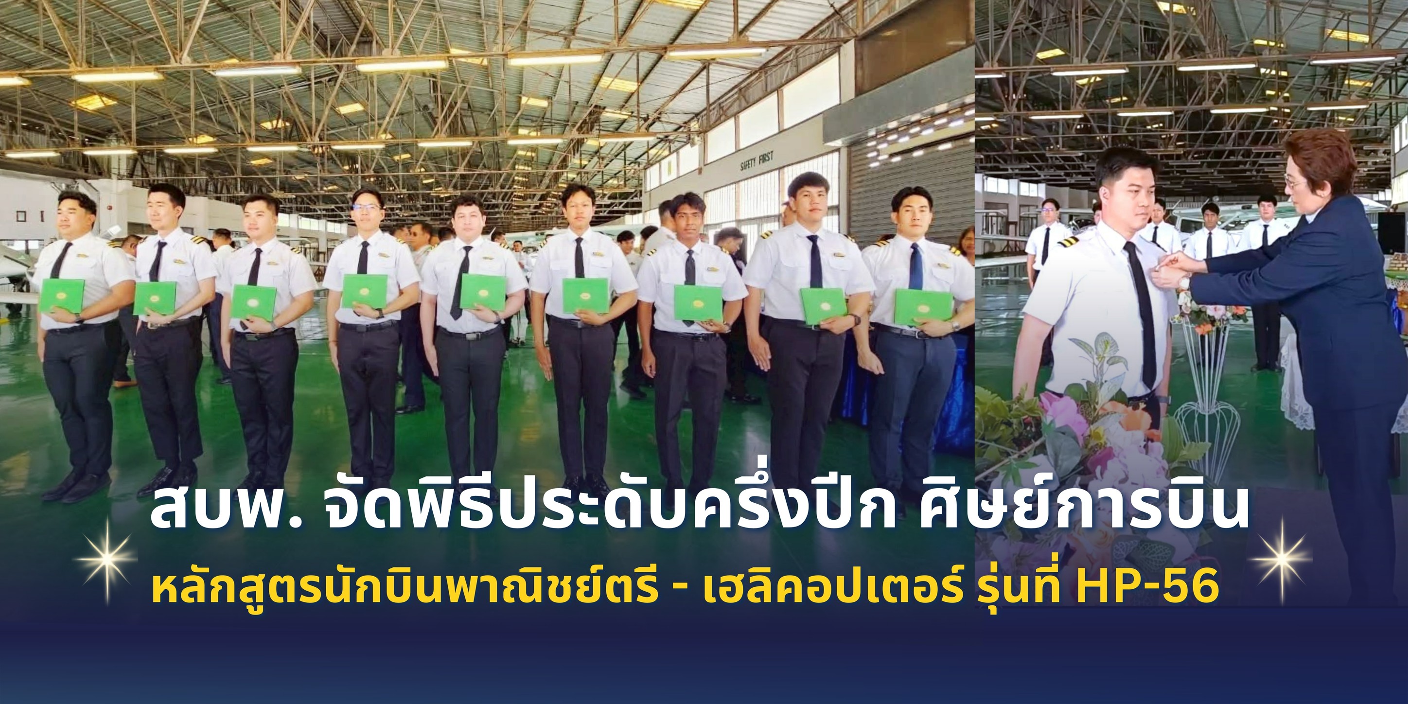 สบพ. จัดพิธีประดับครึ่งปีก ศิษย์การบิน หลักสูตรนักบินพาณิชย์ตรี - เฮลิคอปเตอร์ รุ่นที่ HP-56