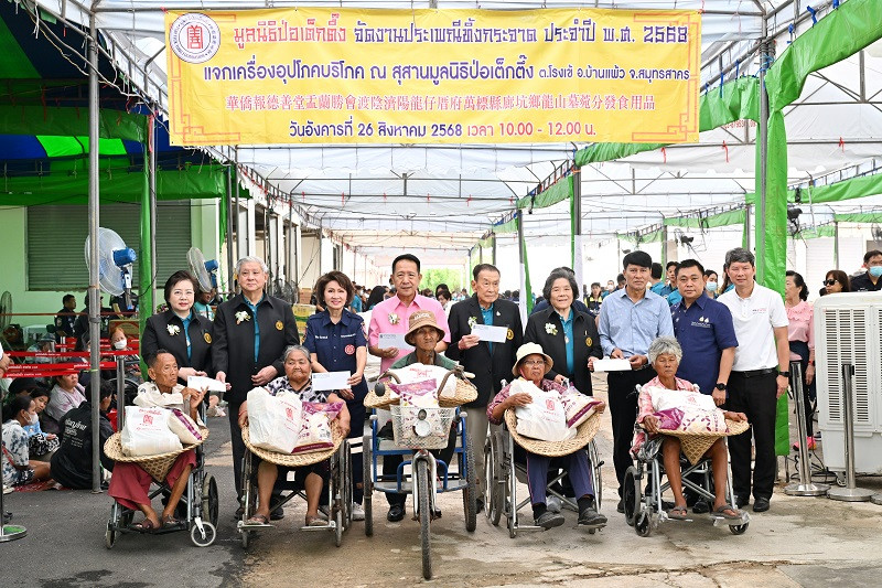 enjoyjam.net » news & activity » news & activity (Moderators: happy, sianbun) » มูลนิธิป่อเต็กตึ๊ง แจกจ่ายเครื่องอุปโภคบริโภค พร้อมค่าพาหนะ ในประเพณีทิ้งกระจาด « previous next » Print Pages: [1] Go Down happy on August 26, 2025, 07:44:44 PM มูลนิธิป่อเต็กตึ๊ง แจกจ่ายเครื่องอุปโภคบริโภค พร้อมค่าพาหนะ ในประเพณีทิ้งกระจาด ประจำปี 2568 รวม 5,000 ชุด และจัดหน่วยแพทย์สงเคราะห์ชุมชนบริการตรวจรักษาฟรี ณ สุสานมูลนิธิป่อเต็กตึ๊ง อำเภอบ้านแพ้ว จังหวัดสมุทรสาครวันนี้ (วันอังคารที่ 26 สิงหาคม พ.ศ. 2568) มูลนิธิป่อเต็กตึ๊ง นำโดย ดร.สุทัศน์ เตชะวิบูลย์ รองประธานกรรมการ นางศิริกุล โอภาสวงศ์ กรรมการและเลขาธิการ นายจารุรัตน์ คุณัตถานนท์ กรรมการและเหรัญญิก พร้อมด้วย นางจินดา บุญลาภทวีโชค กรรมการตรวจสอบ และนางชุติมา ตันติศิริวัฒน์ ผู้ช่วยกรรมการ จัดพิธีแจกข้าวสารพร้อมเครื่องอุปโภคบริโภค เนื่องในประเพณีทิ้งกระจาด ประจำปี 2568 ให้กับประชาชนผู้ยากไร้ที่อาศัยอยู่ในพื้นที่ใกล้เคียงรอบสุสานมูลนิธิป่อเต็กตึ๊ง ตำบลโรงเข้ อำเภอบ้านแพ้ว จังหวัดสมุทรสาคร จำนวน 5,000 ชุด พร้อมมอบค่าพาหนะคนละ 200 บาท ซึ่งในปีนี้จัดเพิ่มขึ้นกว่าปีที่ผ่านมาทั้งชุดเครื่องอุปโภคบริโภคและค่าพาหนะ เพื่อเป็นการช่วยเหลือผู้ยากไร้ สอดรับกับปริมาณผู้ที่มารอรับและค่าครองชีพในปัจจุบันที่เพิ่มขึ้น โดยสิ่งของที่แจกประกอบด้วย ข้าวสาร บะหมี่กึ่งสำเร็จรูป ปลากระป๋อง น้ำปลา น้ำมันพืช ขนม และ เสื้อผ้า บรรจุถุงผ้ามูลนิธิฯ โดยมี นายนริศ นิรามัยวงศ์ ผู้ว่าราชการจังหวัดสมุทรสาคร เป็นประธานในพิธี พร้อมด้วย มูลนิธิการกุศลสมุทรสาคร และผู้แทนหน่วยงานภาครัฐต่างๆ ร่วมในพิธี ณ สุสานมูลนิธิป่อเต็กตึ๊ง ตำบลโรงเข้ อำเภอบ้านแพ้ว จังหวัดสมุทรสาครภายในงาน มูลนิธิป่อเต็กตึ๊งได้จัดเจ้าหน้าที่ – อาสาสมัครมูลนิธิฯ ดูแลอำนวยความสะดวกแก่ประชาชนที่มารอรับ พร้อมบริการอาหารและน้ำดื่ม รวมถึงจัดหน่วยแพทย์สงเคราะห์ชุมชน (หน่วยแพทย์เคลื่อนที่) ออกบริการประชาชน โดยมีคณะอาสาสมัครเฉพาะกิจ และอาสาสมัครศิลปิน อาทิ นายธวัชชัย คชาอนันต์ (แฮ็ค ชวนชื่น) นายฐานัตถ์ จิรรัชชกิจ (บูม) นายรัชต์พงษ์ ทองทับ (น้าทูล) นายรชต โชติมิตรจตุรผล (ตั๊ก) นายปิยะวัฒน์ รัตนหรูวิจิตร (หรูหรา) ร่วมสร้างสีสันภายในงาน โดยบรรยากาศเต็มไปด้วยความอิ่มเอมใจทั้งผู้ให้และผู้รับนอกจากนี้ มูลนิธิป่อเต็กตึ๊ง ยังมีกำหนดการแจกจ่ายเครื่องอุปโภคบริโภคแก่ผู้ยากไร้อีก 2 แห่ง ประกอบด้วย วันศุกร์ที่ 12 กันยายน พ.ศ. 2568 ณ คลินิกการประกอบโรคศิลปะ สาขาการแพทย์แผนจีนหัวเฉียว สาขาศรีราชา จังหวัดชลบุรี และ วันศุกร์ที่ 19 กันยายน พ.ศ. 2568 ณ มูลนิธ