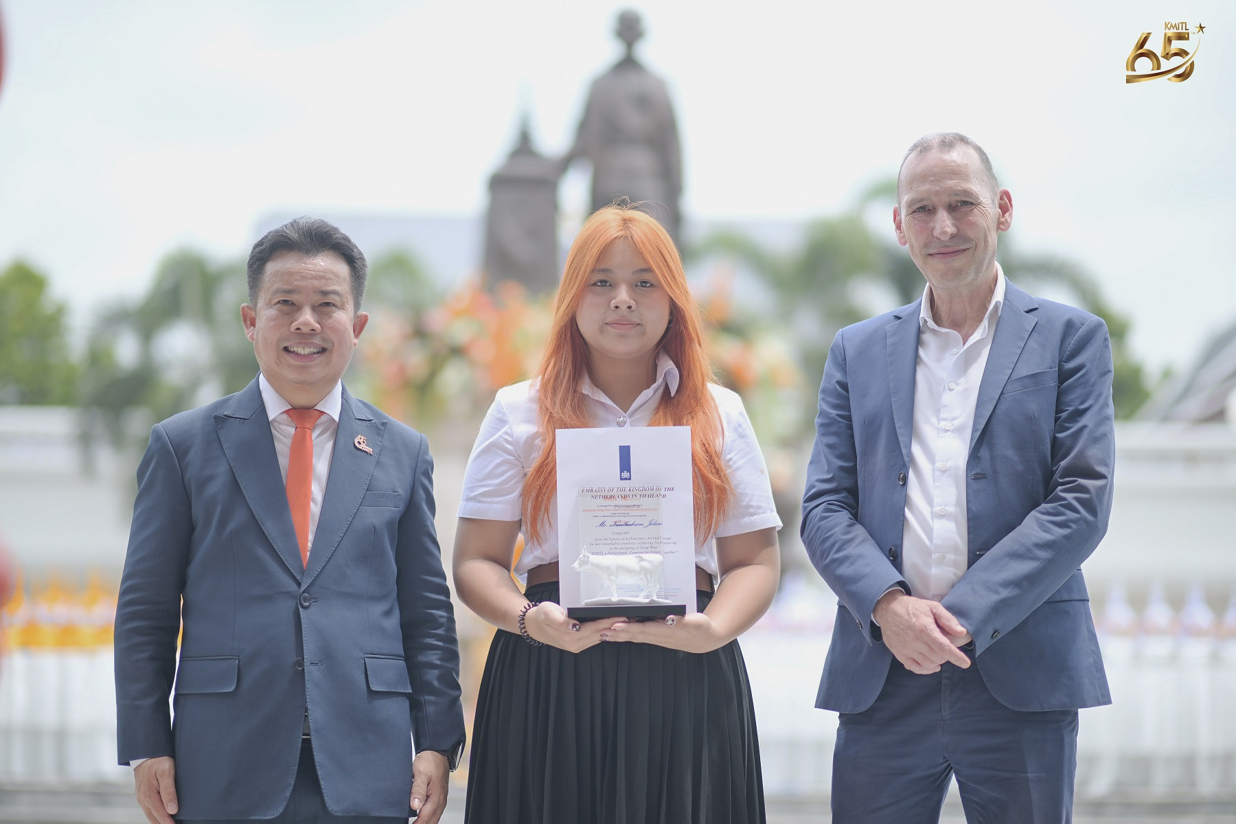 สถาบันเทคโนโลยีพระจอมเกล้าเจ้าคุณทหารลาดกระบัง (สจล.) ร่วมกับสถานเอกอัครราชทูตเนเธอร์แลนด์ประจำประเทศไทย จัดพิธีมอบ “น้องวัว” หรือ Friendship Cow ณ KMITL เพื่อเป็นสัญลักษณ์แห่งความร่วมมืออันแน่นแฟ้น ของทั้งสองประเทศ โดย “น้องวัว” ไม่ได้เป็นเพียงประติมากรรมเชิงศิลป์ แต่ยังสะท้อนถึงความไว้วางใจ มิตรภาพ และวิสัยทัศน์ร่วมกันในการสร้างอนาคตด้านเกษตรอัจฉริยะและความยั่งยืนพิธีดังกล่าวนับเป็นโอกาสพิเศษเนื่องในโอกาสครบรอบ 65 ปี และก้าวเข้าสู่ปีที่ 66 โดยมิตรภาพครั้งนี้จะเป็นเสมือนการสานต่อความร่วมมือระหว่างไทยและเนเธอร์แลนด์ในมิติด้านการศึกษา เกษตร และการวิจัยเพื่อสังคมโลก โดยจัดขึ้น ณ ลานนวัตกรรมดาราศาสตร์ อาคารหอพระราชประวัติพระบาทสมเด็จพระจอมเกล้าฯ สจล.“น้องวัว” เกิดจากโครงการประกวดออกแบบลวดลายภายใต้หัวข้อ “KMITL x Netherlands: Farming the Future Together” ซึ่งมีนักศึกษาส่งผลงานกว่า 46 ชิ้น และได้รับการคัดเลือก 2 ผลงานที่โดดเด่น ได้แก่1. “Blooming Tomorrow, together” รางวัลชนะเลิศ โดย นางสาวสริสา ขอเพิ่มกลาง นักศึกษาภาควิชาครุศาสตร์สถาปัตยกรรมและการออกแบบ คณะครุศาสตร์อุตสาหกรรมและเทคโนโลยี