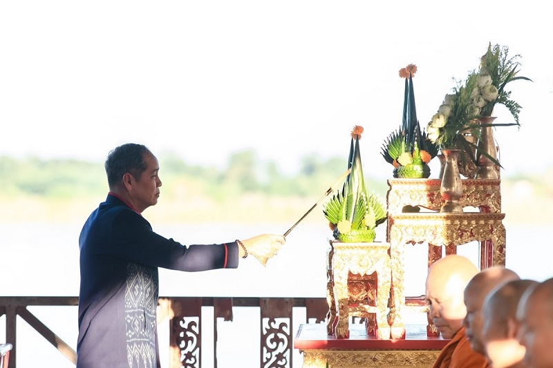 ทั้งนี้ รัฐมนตรีว่าการกระทรวงวัฒนธรรม ได้มอบหมาย นายประสพ เรียงเงิน ปลัดกระทรวงวัฒนธรรม จุดรูปเทียนบูชาพระรัตนตรัย สมาทานศีล ร่วมพิธีเจริญพระพุทธมนต์และถวายปัจจัยไทยธรรม จากนั้นมีกิจกรรมพิธีจ้ำเคราะห์ หรือสะเดาะเคราะห์ตามปีเกิดหรือปีนักษัตร เพื่อปัดเป้าความทุกข์โศกและสิ่งที่ไม่ดีออกจากชีวิตตามความความเชื่อที่สืบทอดกันมาแต่โบราณ โดยนางสาวซาบิดา ไทยเศรษฐ์ รัฐมนตรีว่าการกระทรวงวัฒนธรรม เป็นประธานเปิดและประธานพิธีร่วมปล่อยเรือไฟโบราณ เพื่อขอขอขมาพระแม่คงคานำสิ่งที่ไม่ดีให้ไหลไปกับสายน้ำ พร้อมทั้งชมการปล่อยไข่พญานาค กะโป๊ว (กระทงสาย) และเรือไฟโบราณเชื่อมสัมพันธ์สองฝั่งโขงไทยและ สปป.ลาว จำนวน ๑๒ ลำ ๑๒ นักษัตร และชมการแสดงฟ้อนรำจากกลุ่มแม่บ้านอำเภอธาตุพนม