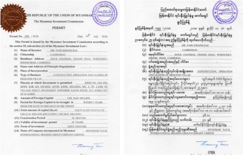 d. เมืองที่นายเสอจื้อเจียงพัฬนานั้นมีการจดทะเบียนกับประเทศเมียนมาร์และมีเอกสารถูกต้อง ไม่ใช่ “เมืองมืด” ที่ว่า
