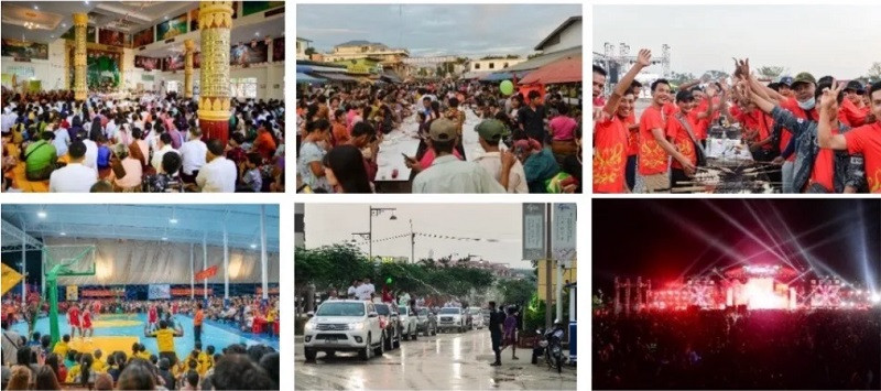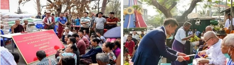 ภาพซ้าย: ปีพ.ศ. 2566 บริจาคเงิน 1,600 ล้านจ๊าดเมียนมาร์ช่วยเหลือการสร้างบ้านให้กับผู้ประสบภัย