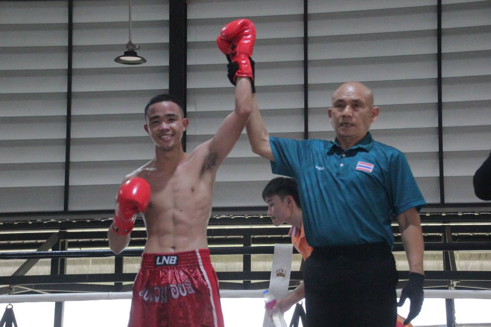 อุ่นเครื่อง 4 ยก น้ำหนัก 64 กิโลกรัม ภัทริศวร์ พิณสุรงค์ ชนะทีเคโอยก1 ปรเมศวร์ หงษ์ปราโมทย์