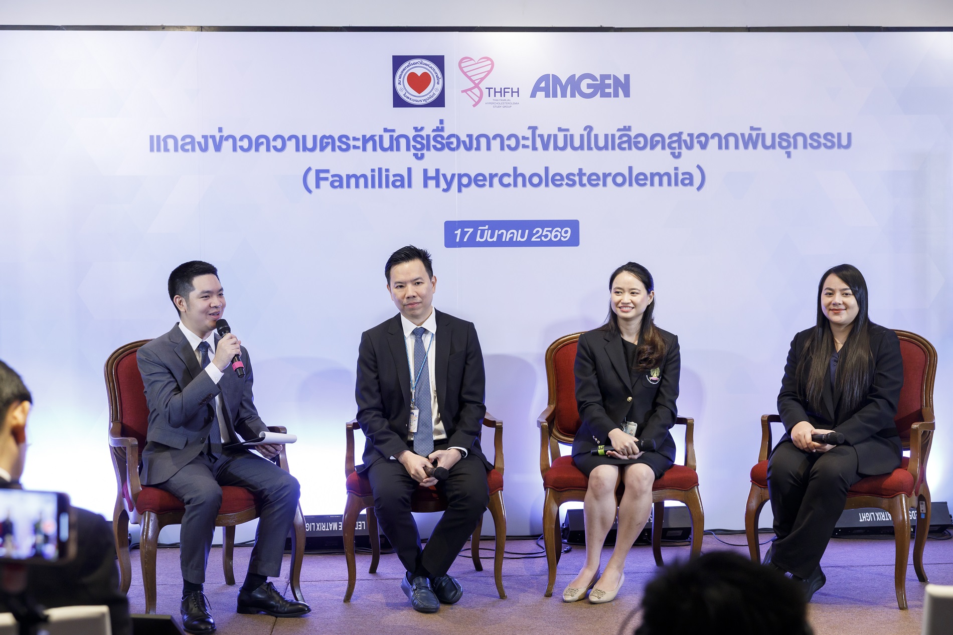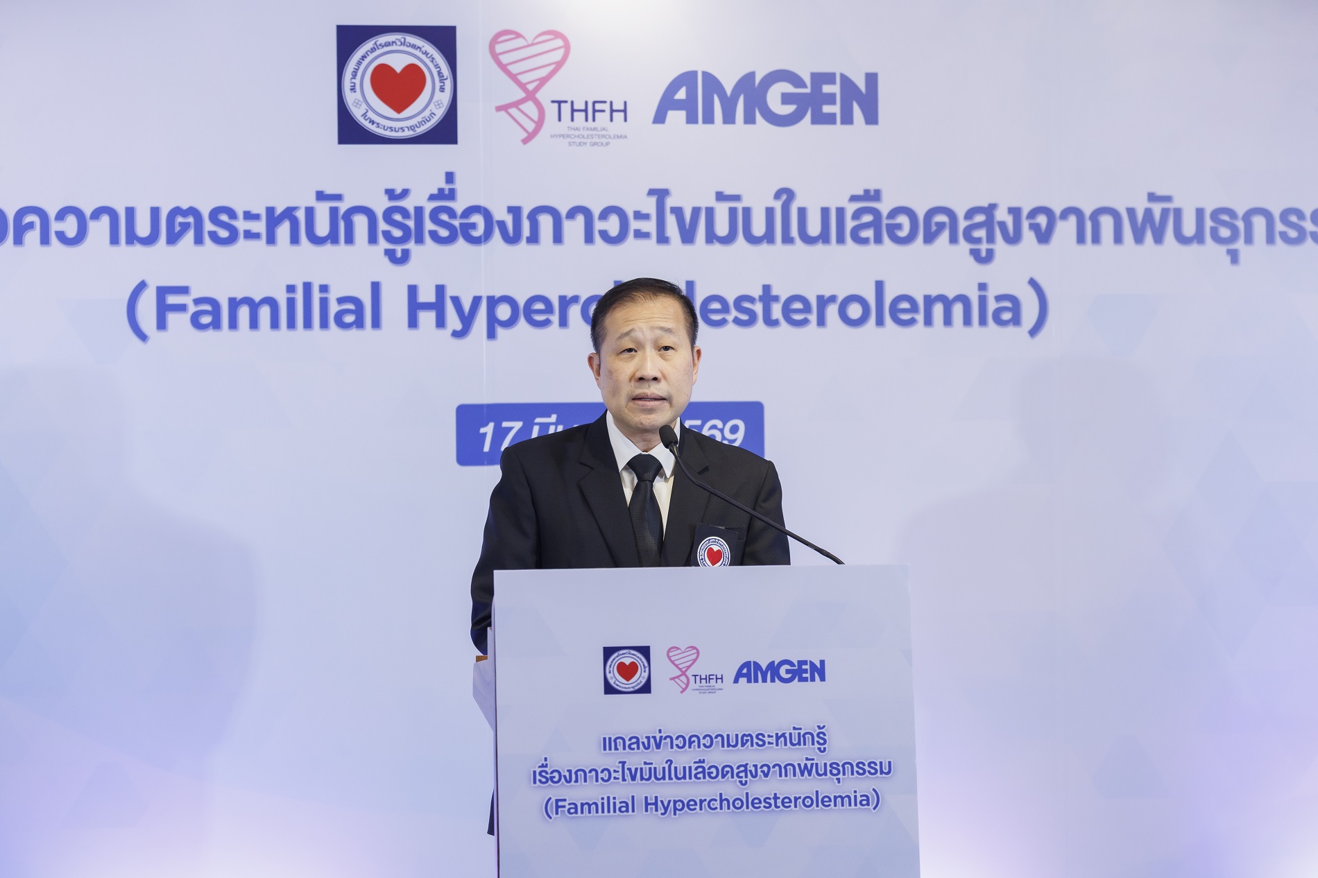 สมาคมแพทย์โรคหัวใจแห่งประเทศไทย ในพระบรมราชูปถัมภ์ ร่วมกับเครือข่าย Thai FH Network และ บริษัทแอมเจน (ประเทศไทย) จํากัด จัดกิจกรรมเพื่อส่งเสริมความตระหนักรู้เกี่ยวกับโรคภาวะไขมันในเลือดสูงจากพันธุกรรม (Familial Hypercholesterolemia: FH) โดยมีแพทย์ผู้เชี่ยวชาญ บุคลากรทางการแพทย์ และหน่วยงานที่เกี่ยวข้องเข้าร่วมงาน ณ โรงแรมแกรนด์ ไฮแอท เอราวัณ กรุงเทพฯ พล.ต.ต.นพ. เกษม รัตนสุมาวงศ์ นายกสมาคมแพทย์โรคหัวใจแห่งประเทศไทย ในพระบรมราชูปถัมภ์ กล่าวว่า ภาวะ Familial Hypercholesterolemia (FH) เป็นโรคทางพันธุกรรมที่ทําให้ระดับไขมัน LDL-C ในเลือดสูงตั้งแต่อายุยังน้อย ส่งผลให้ผู้ป่วยมีความเสี่ยงสูงต่อโรคหัวใจและหลอดเลือดก่อนวัยอันควร หากไม่ได้รับ การวินิจฉัยและรักษาอย่างเหมาะสม ผู้ป่วยจํานวนหนึ่งอาจเผชิญภาวะหัวใจขาดเลือดหรือภาวะแทรกซ้อนรุนแรงตั้งแต่อายุยังน้อยสมาคมแพทย์โรคหัวใจแห่งประเทศไทยฯ จึงได้ดําเนินโครงการสนับสนุนงานทางวิชาการเพื่อสร้างความตระหนักรู้สําหรับผู้ป่วย FH ต่างๆ โดยโครงการดังกล่าวมี แพทย์ผู้เชี่ยวชาญจากโรงพยาบาลในหลายภูมิภาคเข้าร่วมดําเนินงาน โดยมีเป้าหมายเพื่อส่งเสริมการวินิจฉัยโรค FH และการดูแลรักษาตามแนวทางมาตรฐานสากล ซึ่งถือเป็นความร่วมมือระดับประเทศที่มุ่งสนับสนุนผู้ป่วยโรคไขมันในเลือดสูงจากพันธุกรรมศ.ดร.นพ. วีรพันธุ์ โขวิฑูรกิจ ประธานเครือข่าย Thai FH Network กล่าวว่า ปัจจุบันผู้ป่วย FH จํานวนมากยังไม่ได้รับการวินิจฉัยหรือเข้าถึงการรักษาที่เหมาะสม การดําเนินโครงการต่างๆ เกี่ยวกับโรค FH จึงถือเป็นก้าวสําคัญในการเพิ่มโอกาสในการได้รับการวินิจฉัยและการดูแลรักษาที่เหมาะสม โดยเฉพาะในกลุ่มผู้ป่วยภายใต้สิทธิประกันสังคมและหลักประกันสุขภาพถ้วนหน้า พร้อมเน้นย้ำถึงความสำคัญของการสร้างความตระหนักรู้และการคัดกรองผู้ป่วยตั้งแต่ระยะเริ่มต้น