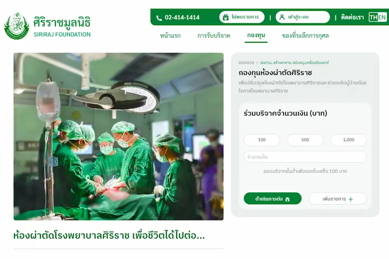 สำหรับผู้มีจิตศรัทธาทุกภาคส่วน ร่วมเป็นส่วนหนึ่งในการส่งต่อ “โอกาสแห่งการมีชีวิต” โดยสามารถร่วมบริจาคสมทบทุนศิริราชมูลนิธิ (กองทุนห้องผ่าตัดศิริราช) สามารถนำไปลดหย่อนภาษีได้ 2 เท่า ข้อมูลเพิ่มเติมเว็บไซต์ https://donation.sirirajfoundation.or.th/campaign/D004332 หรือ โทรศัพท์ 02-414-1414