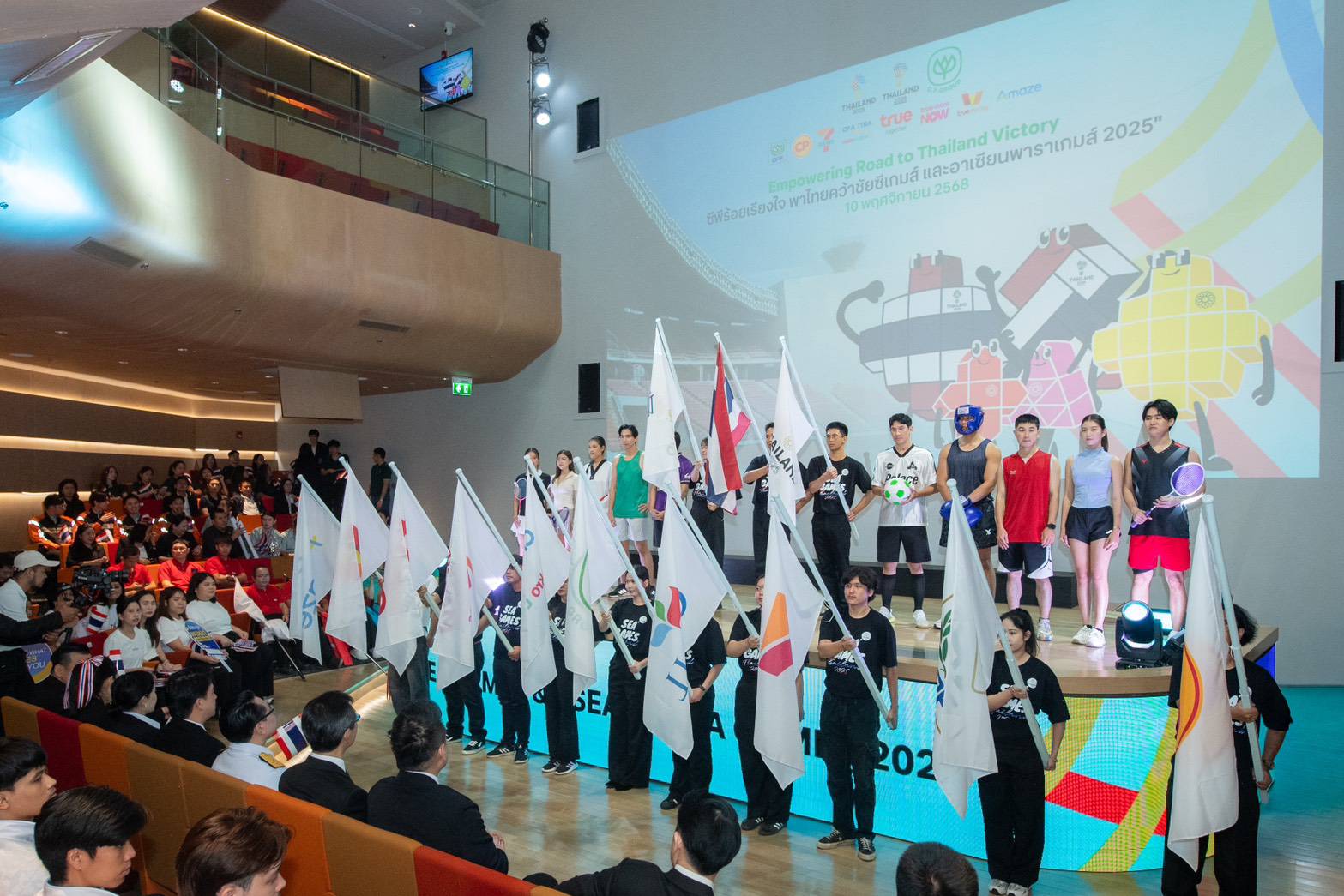 เมื่อวัน 10 พฤศจิกายน 2568 ณ ห้องออดิทอเรียม ชั้น 6 ทรู ดิจิทัล พาร์ค กรุงเทพฯ เครือเจริญโภคภัณฑ์ หรือ ซีพี พร้อมบริษัทในเครือ ได้แก่ ซีพีเอฟ, ซีพี ออลล์, ซีพี แอ็กซ์ตร้า, ทรู คอร์ปอเรชั่น, ทรูวิชั่นส์, ทรูมันนี่ และอเมซ (Amaze Super App) ประกาศทุ่มงบกว่า 100 ล้านบาท สนับสนุนการกีฬาแห่งประเทศไทย (กกท.) ในการจัดการแข่งขัน ซีเกมส์ และอาเซียนพาราเกมส์ 2025 ที่ประเทศไทยเป็นเจ้าภาพ ตอกย้ำบทบาทของภาคเอกชนไทยที่มีนโยบายสนับสนุนด้านการกีฬามาอย่างต่อเนื่อง ซึ่งในโอกาสนี้ได้รวมพลังจาก 7 กลุ่มธุรกิจในเครือ จัดงาน “ซีพี ร้อยเรียงใจ พาไทยคว้าชัย ซีเกมส์ และอาเซียนพาราเกมส์ 2025” ณ ห้องออดิทอเรียม ทรู ดิจิทัล พาร์ค ทั้งนี้ ได้รับเกียรติจาก ดร.ก้องศักด ยอดมณี ผู้ว่าการการกีฬาแห่งประเทศไทย ร่วมในการ Kick off ครั้งสำคัญของซีพีและบริษัทในเครือ โดยมี ดร.ธีระพล ถนอมศักดิ์ยุทธ ประธานคณะผู้บริหารด้านความยั่งยืนองค์กรและการพัฒนากลยุทธ์ เครือเจริญโภคภัณฑ์ และผู้บริหารจากกลุ่มธุรกิจต่าง ๆ ในเครือฯ ได้แก่ นางสาวอนรรฆวี ชูรัตน์ ผู้บริหารสูงสุด สายงานการตลาดกลาง บริษัท เจริญโภคภัณฑ์อาหาร จำกัด (มหาชน), นายสุชาติ วัฒนา ผู้ช่วยกรรมการผู้จัดการ สายงานการตลาด บริษัท ซีพี ออลล์ จำกัด (มหาชน), นางศิริพร เดชสิงห์ ประธานเจ้าหน้าที่บริหาร สายงานความยั่งยืนและสื่อสารองค์กร บริษัท ซีพี แอ็กซ์ตร้า จำกัด (มหาชน), นายโอลิเวอร์ กิตติพงษ์ วีระเตชะ หัวหน้าคณะผู้บริหารด้านแบรนด์และมีเดีย บริษัท ทรู คอร์ปอเรชั่น จำกัด (มหาชน), นายองอาจ ประภากมล หัวหน้าผู้บริหาร หน่วยงานทรูวิชั่นส์ และมีเดีย บริษัท ทรู คอร์ปอเรชั่น จำกัด (มหาชน), นายกรกฤต เมฆบุญส่งลาภ ผู้อำนวยการฝ่ายความสำเร็จทางธุรกิจของพันธมิตร บริษัท ทรูมันนี่ จำกัด และ นายภูมิชนัตถ์ เรืองชัยนันท์ ประธานเจ้าหน้าที่บริหารฝ่ายกลยุทธ์และข้อมูล Amaze Super App ร่วมกันประกาศการเป็น Group Main Sponsor ในมหกรรมกีฬาที่ยิ่งใหญ่ของภูมิภาค “ซีเกมส์ และอาเซียนพาราเกมส์ 2025” พร้อมแสดงเจตนารมณ์ในการสนับสนุนการแข่งขัน ทั้งด้านอาหาร โครงสร้างพื้นฐานด้านดิจิทัลและการสื่อสารครอบคลุมทุกพื้นที่การแข่งขัน ระบบการเงินอัจฉริยะ ช่องทางการถ่ายทอดสดตลอดการแข่งขัน และบริการต่าง ๆ เพื่อสนับสนุนประเทศไทยในการเป็นเจ้าภาพการแข่งขันซีเกมส์และอาเซียนพาราเกมส์อย่างสง่างาม พร้อมเชิญชวนคนไทยทั้งประเทศร่วมเชียร์ และส่งกำลังใจให้ทัพนักกีฬาไทย คว้าชัยชนะในซีเกมส์และอาเซียนพาราเกมส์