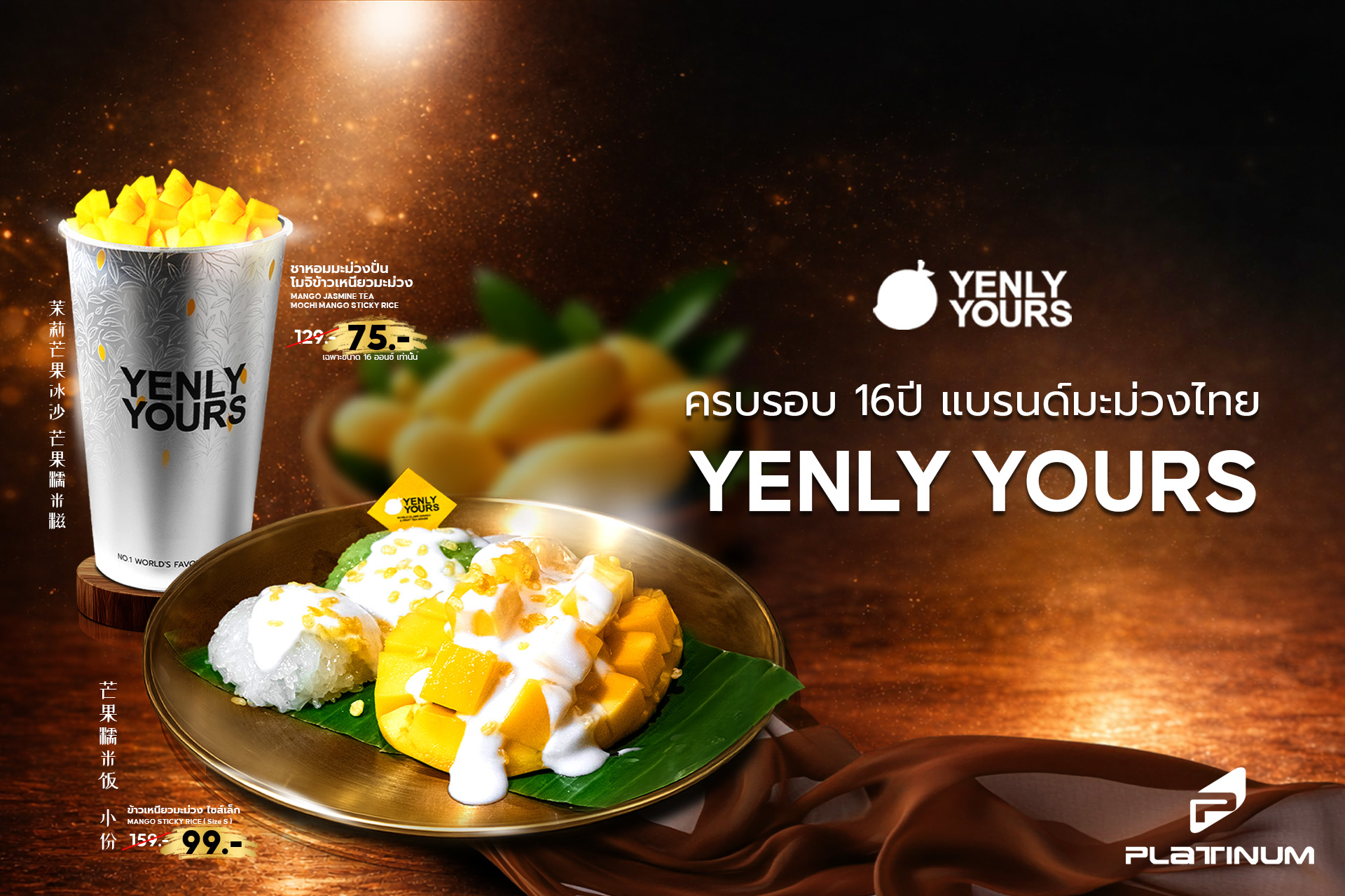 เปิดเมนูจัดโปรโมชั่นฉลองครบรอบ 16 ปี ลดราคาพิเศษแบบ ที่ไม่ได้มีบ่อย ได้แก่ ข้าวเหนียวมะม่วง (ชุดเล็ก) ปกติ 159 บาท เหลือเพียง 99 บาท ชามะลิหอมมะม่วงปั่น Mochi Mango Sticky Rice 16 ออนซ์ ปกติ 129 บาท เหลือเพียง 75 บาท ทุกวัน จันทร์ – ศุกร์ เวลา 10:00 – 16:00 น. เฉพาะหน้าร้านเท่านั้น ตั้งแต่วันนี้ถึงวันที่ 30 เมษายน 2569 ที่ร้าน Yenly Yours ชั้น 1 ศูนย์การค้าแพลทินัม ติดตามข่าวสารร้านค้าและโปรโมชั่นเพิ่มเติมได้ที่ Facebook: Platinum Fashion Mall แพลทินัม แฟชั่น มอลล์