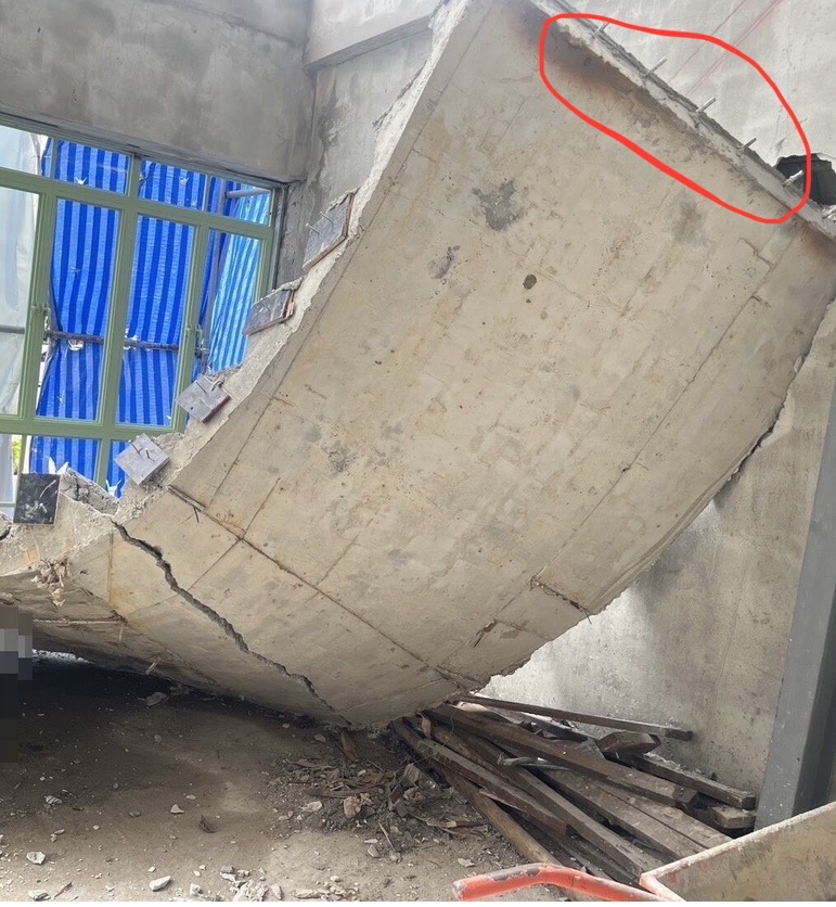 2. การเสริมเหล็กตรงบริเวณรอยต่อระหว่างบันไดปูน กับคานรองรับด้านบน ทั้งในแง่จำนวนเหล็กเส้นที่ใช้ยึด ระยะฝัง และวิธีการฝังยึด มีความแข็งแรงเพียงพอ รับน้ำหนักบันไดได้หรือไม่