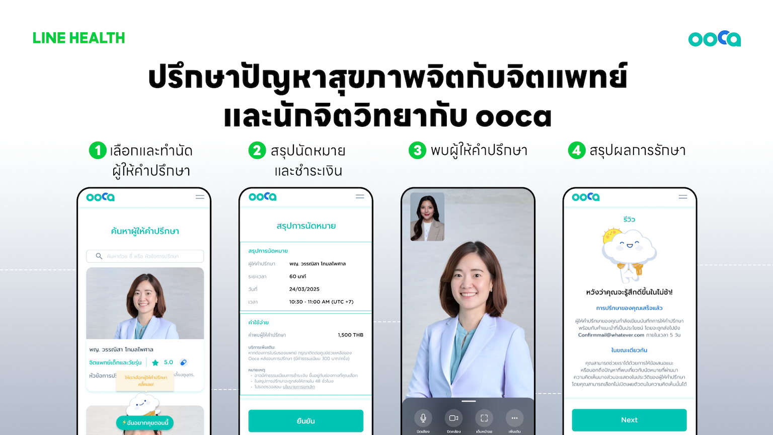 ooca บริการด้านสุขภาพจิตที่ให้พบจิตแพทย์หรือนักจิตวิทยาผ่านวิดีโอคอล เลือกผู้ให้คำปรึกษาและเวลานัดหมายได้เอง เหมาะสำหรับผู้ที่ต้องการพูดคุยหรือหาทางออกในช่วงเวลาที่เครียด