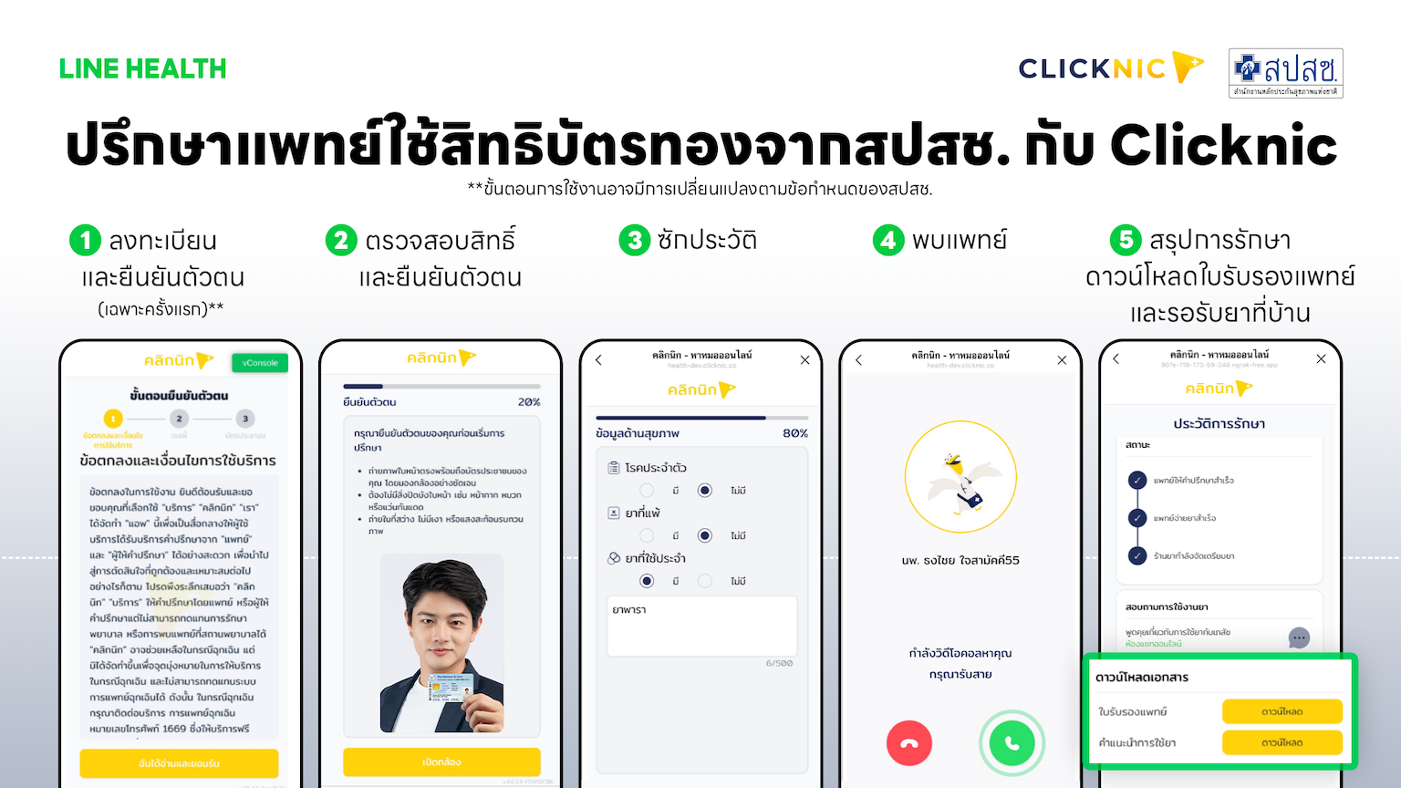 Clicknic บริการปรึกษาแพทย์ออนไลน์สำหรับผู้ที่ใช้สิทธิบัตรทอง 42 กลุ่มอาการทั่วไป สามารถยืนยันตัวตนผ่าน e-KYC ตรวจสอบสิทธิ์ และพบแพทย์ออนไลน์โดยไม่เสียค่าใช้จ่าย