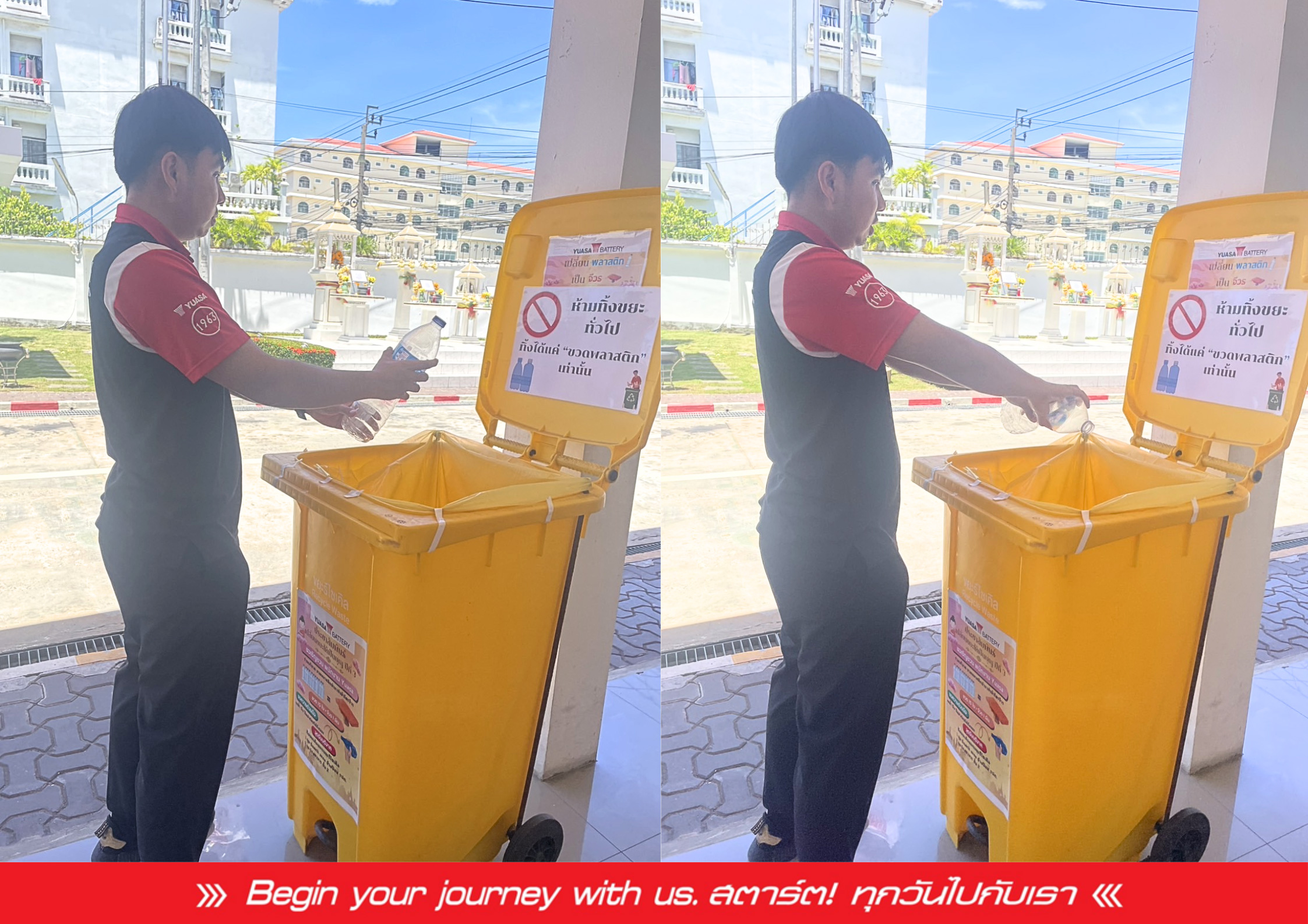บริษัท ยัวซ่าแบตเตอรี่ ประเทศไทย จำกัด (มหาชน) เดินหน้าสานต่อพันธกิจด้านความรับผิดชอบต่อสังคม (CSR) ด้วยโครงการ “เปลี่ยนขยะให้เป็นบุญ” ที่เชิญชวนพนักงานเข้ามาร่วมเป็นส่วนหนึ่งของการจัดการขยะอย่างยั่งยืน โดยให้พนักงานบริจาคขวดน้ำพลาสติกที่ใช้แล้ว เพื่อนำเข้าสู่กระบวนการรีไซเคิล ซึ่งความพิเศษของโครงการนี้คือ การนำขวดพลาสติกทั้งหมดไปแปรเปลี่ยนเป็นมูลค่า และผลิตเป็นผ้าไตรจีวร เพื่อนำไปถวายแก่วัดจากแดง อำเภอพระประแดง จังหวัดสมุทรปราการ โครงการนี้จึงไม่เพียงแต่เป็นการปลูกฝังจิตสำนึกการแยกขยะ และสนับสนุนการจัดการขยะอย่างต่อเนื่อง เพื่อสร้างวัฒนธรรมองค์กรที่เป็นมิตรต่อสิ่งแวดล้อม แต่ยังเป็นการสร้างคุณค่าคืนสู่สังคมและชุมชน ไปพร้อมกัน ถือเป็นการรวมพลังของชาวยัวซ่าแบตเตอรี่ฯ ในการสร้างสรรค์สิ่งดี ๆ ที่เป็นประโยชน์ในหลากหลายมิติ ทั้งต่อสิ่งแวดล้อม ศาสนา และการพัฒนาชุมชนในท้องถิ่นสมุทรปราการอย่างแท้จริง