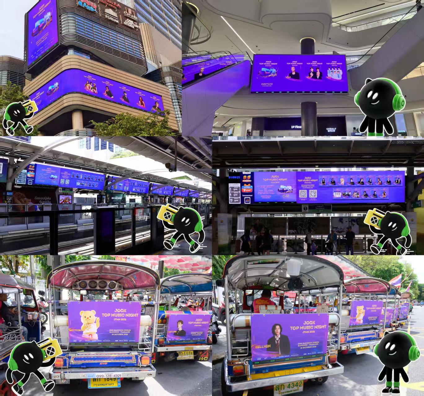สำหรับการโปรโมท JTMN ปีนี้ ครอบคลุมแลนด์มาร์กสำคัญทั่วกรุงเทพฯ อย่างจอขนาดใหญ่ตามแนว BTS ทั้งสายสีเขียวเข้มและเขียวอ่อน ที่ฉายภาพศิลปินอย่างต่อเนื่องตลอดเส้นทาง ช้อปปิ้งฮับอย่าง Central World ก็ถูกเนรมิตด้วยจอกลางแจ้งยักษ์ที่ส่องสว่างด้วยภาพศิลปินทั้ง 15 วง ขณะที่ One Bangkok จัดเต็มทั้งจอกลางแจ้ง จอกลางอาคาร และหน้าทางเข้า MRT ให้แฟนเพลงได้แวะถ่ายรูปตลอดทั้งวัน ยังไม่หมดเท่านั้น รถตุ๊กตุ๊กที่แล่นไปทั่วกรุงก็กลายเป็นสื่อโปรโมทเคลื่อนที่ เติมเต็มความคึกคักของเมืองอย่างแท้จริง ขณะเดียวกัน JOOX ยังเปิดแคมเปญออนไลน์ชวนแฟน ๆ ร่วมสนุกด้วยการถ่ายรูปเช็กอินที่จุดโปรโมท พร้อมติดแฮชแทก เพื่อลุ้นรับบัตรเข้างาน ของที่ระลึก และรางวัลสุดเอ็กซ์คลูซีฟ