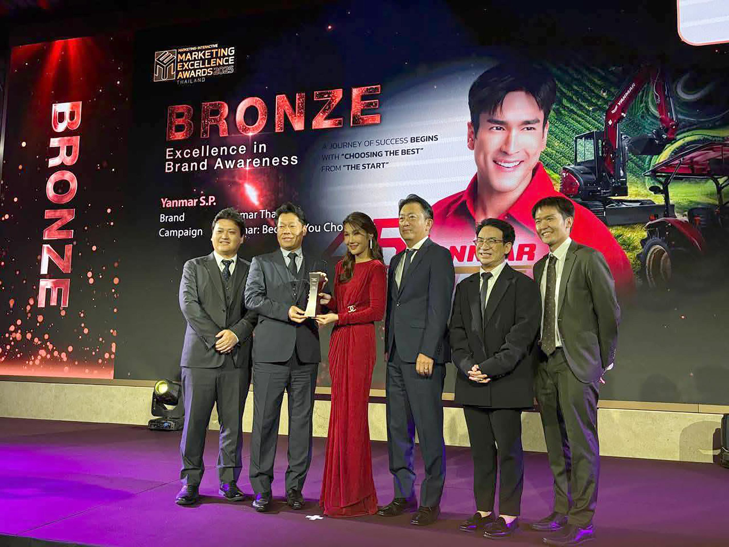 ยันม่าร์ เอส.พี. ผู้นำเครื่องจักรกลการเกษตรในประเทศไทย ได้รับรางวัลระดับสากลจากงาน “Marketing Excellence Awards 2025” ที่จัดขึ้นโดย MARKETING-INTERACTIVE สื่อชั้นนำจากประเทศสิงคโปร์ นำโดย คุณเรียวสุเกะ ยามากุจิ ประธานบริหาร บริษัท ยันม่าร์ เอส.พี. จำกัด พร้อมด้วย คุณอิโนะอุเอะ ยูทาโร่ ผู้จัดการฝ่ายการตลาด ได้ขึ้นรับรางวัลระดับ Bronze ประเภท Excellence in Brand Awareness จากแคมเปญ “Because You Choose Us” โดยแคมเปญนี้ได้ คุณณเดชน์ คูกิมิยะ ซูเปอร์สตาร์แถวหน้าของเมืองไทยมาเป็นพรีเซนเตอร์ ถือเป็นส่วนสำคัญในการยกระดับภาพลักษณ์แบรนด์และสร้างการรับรู้ในกลุ่มเกษตรกรรุ่นใหม่ รางวัลนี้ไม่เพียงตอกย้ำความเป็นผู้นำด้านการตลาดของยันม่าร์ในประเทศไทย แต่ยังแสดงให้เห็นถึงศักยภาพด้านการตลาดที่ได้รับการยอมรับในระดับสากลอีกด้วย ณ โรงแรม สยามเคมปินสกี้ กรุงเทพฯ เมื่อวันพุธที่ 17 กันยายน ที่ผ่านมา