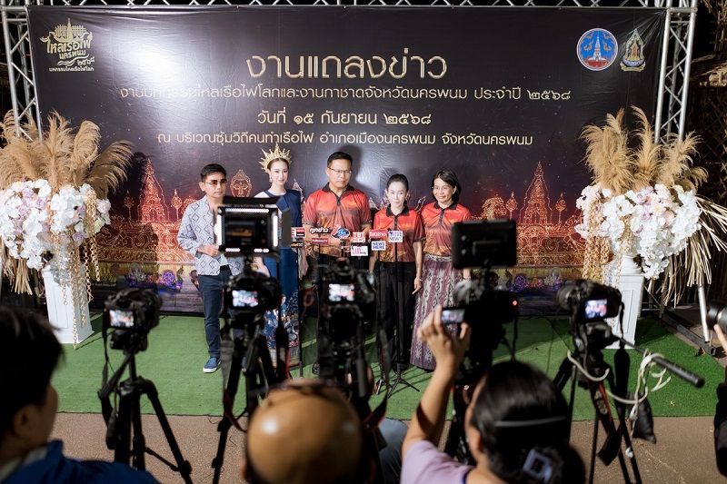 นายปราชญา อุ่นเพชรวรากร ผู้ว่าราชการจังหวัดนครพนม เป็นประธาน พร้อมด้วย นางธนวัน อุ่นเพชรวรากร นายกเหล่ากาชาดจังหวัดนครพนม, นางยุวดี มีบุญ วัฒนธรรมจังหวัดนครพนม, นางสาวเสาวนีย์ คนกล้า ผู้อำนวยการการท่องเที่ยวแห่งประเทศไทย สำนักงานนครพนม, นายอนุชิต หงษาดี นายกองค์การบริหารส่วนจังหวัดนครพนม, ายนิวัต เจียวิริยบุญญา นายกเทศมนตรีเมืองนครพนม และ พ.ต.อ.อนุสรณ์ มั่งมี รองผู้บังคับการตำรวจภูธรจังหวัดนครพนม ร่วมแถลงข่าว บริเวณซุ้มวิถีคนทำเรือไฟอำเภอเมืองนครพนม ริมฝั่งโขง ตำบลในเมือง อำเภอเมืองนครพนม จังหวัดนครพนม ในการเตรียมความพร้อมการจัดงานประเพณีไหลเรือไฟและงานกาชาดจังหวัดนครพนม ประจำปี 2568 ด้านการจัดกิจกรรม, การรักษาความปลอดภัย, การจราจร, สถานที่พัก และการอำนวยความสะดวกในด้านต่างๆ ที่จะมีขึ้น เพื่อรองรับนักท่องเที่ยวที่จะเดินทางมาเยือนจังหวัดนครพนม ในช่วงวันออกพรรษา ระหว่างวันที่ 27 กันยายน-8 ตุลาคม 2568