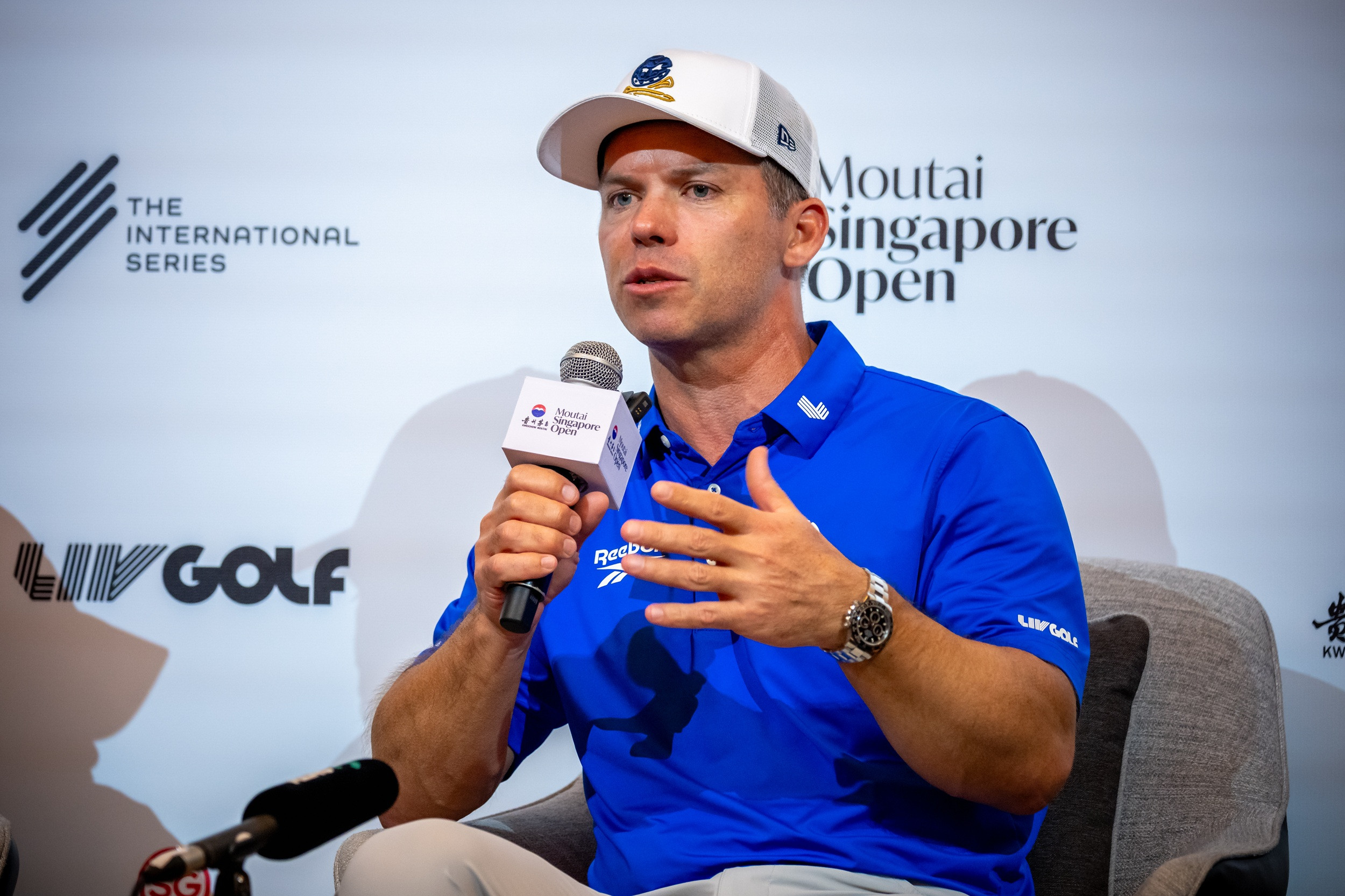 (จากซ้าย) ตัวแทนนักกอล์ฟชั้นนำประกอบด้วย มิเกล ทาบัวนา แชมป์อินเตอร์เนชันแนล ซีรีส์ ฟิลิปปินส์, พอล เคซีย์ แชมป์พีจีเอทัวร์ 3 รายการจากอังกฤษ และ เจมส์ เหลียว นักกอล์ฟดาวรุ่งของสิงคโปร์ ให้สัมภาษณ์ในงานแถลงข่าวการแข่งขันกอล์ฟอินเตอร์เนชันแนล ซีรีส์ รายการ “เหมาไถ สิงคโปร์ โอเพ่น” ณ สนามสิงคโปร์ ไอแลนด์ คันทรี คลับ เมื่อวันที่ 5 พฤศจิกายนที่ผ่านมา (ภาพ: Asian Tour)