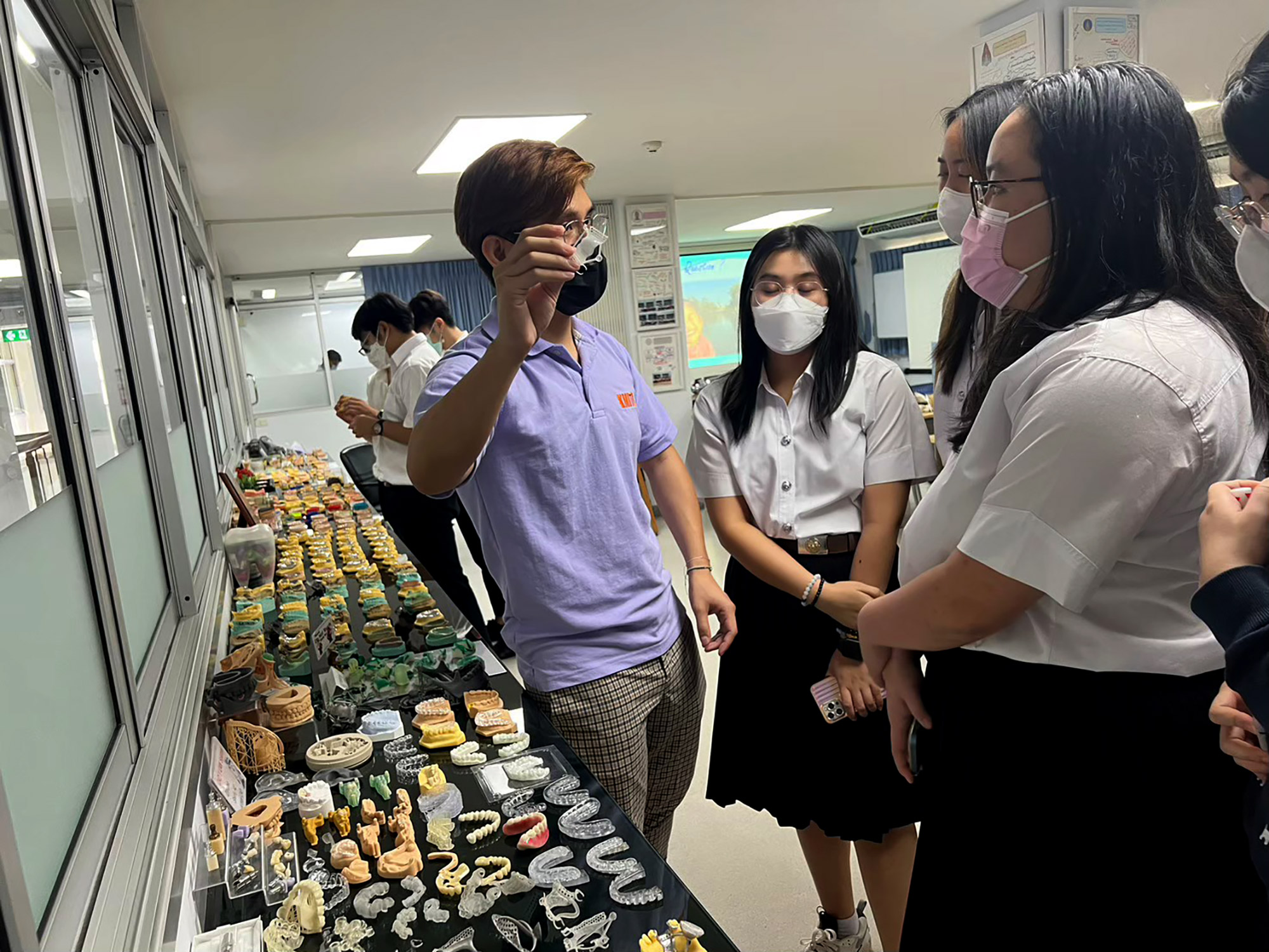 •   การเรียนรู้แบบ Interdisciplinary: นักศึกษาได้เรียนร่วมกับหลายคณะ เช่น แพทยศาสตร์ วิศวกรรม วิทยาศาสตร์ IT และการออกแบบเพื่อสร้างนวัตกรรมทันตกรรมแบบข้ามศาสตร์ (Multi-disciplinary Innovation) ที่ตอบโจทย์โลกจริง