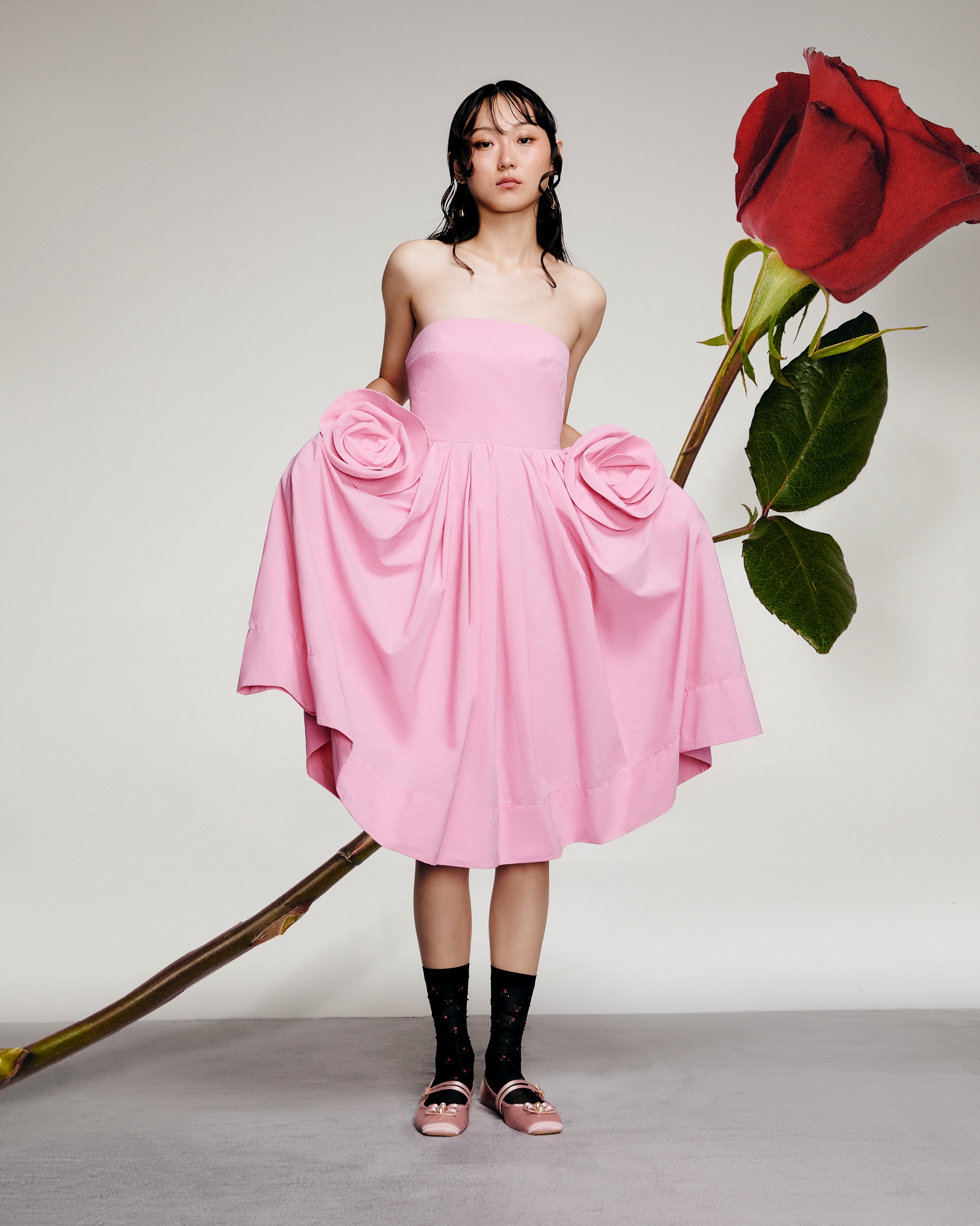 ไฮไลต์ประจำคอลเลกชั่นนี้ อาทิ เดรสสั้นสีนู้ดปักดอกไม้ เติมความพิเศษด้วยดีไซน์เบสิคในสีสันคลาสสิค แต่เหนือชั้นด้วยดอกไม้สีชมพูลูกกวาดขนาดเล็กมากมายที่ปักอย่างประณีต เดรสเกาะอกพิมพ์ลายดอกไม้ออมเบร ไอเทมคลาสสิกในเฉดสีดำสนิทที่ถูกแต่งแต้มด้วยลวดลายดอกไม้หลอมละลายในโทนสีสันสดใส ให้ความเอฟฟอร์ทเลสเหมาะกับทั้งช่วงเช้าและค่ำคืน เดรสสั้นแต่งดอกกุหลาบ เดรสโทนสีดำเข้มสุขุม พิเศษด้วยเทคนิคแต่งดอกกุหลาบขมวดปมขนาดใหญ่บริเวณเหนือชายกระโปรง แมทช์กับรองเท้าส้นสูงเปลือยเท้าสีป็อปคัลเลอร์สำหรับไนท์เอาท์สุดเซ็กซี่ เดรสเกาะอกแต่งดอกกุหลาบ สวยสง่าในสไตล์เฟมินีนแต่ยังคงโดดเด่นด้วยเทคนิคตกแต่งดอกกุหลาบขนาดใหญ่บริเวณสะโพก และสุดท้าย จัมพ์สูทคล้องคอ เรียบง่ายแต่อิมแพคในไอเทมพาแลตสีนู้ด คัทติ้งสุดเนี๊ยบที่แนบเนียนเข้ากับทุกสรีระ ตอบโจทย์สาวผู้มองหาความน้อยแต่มาก ให้ความเรียบและโก้ในเวลาเดียวกัน