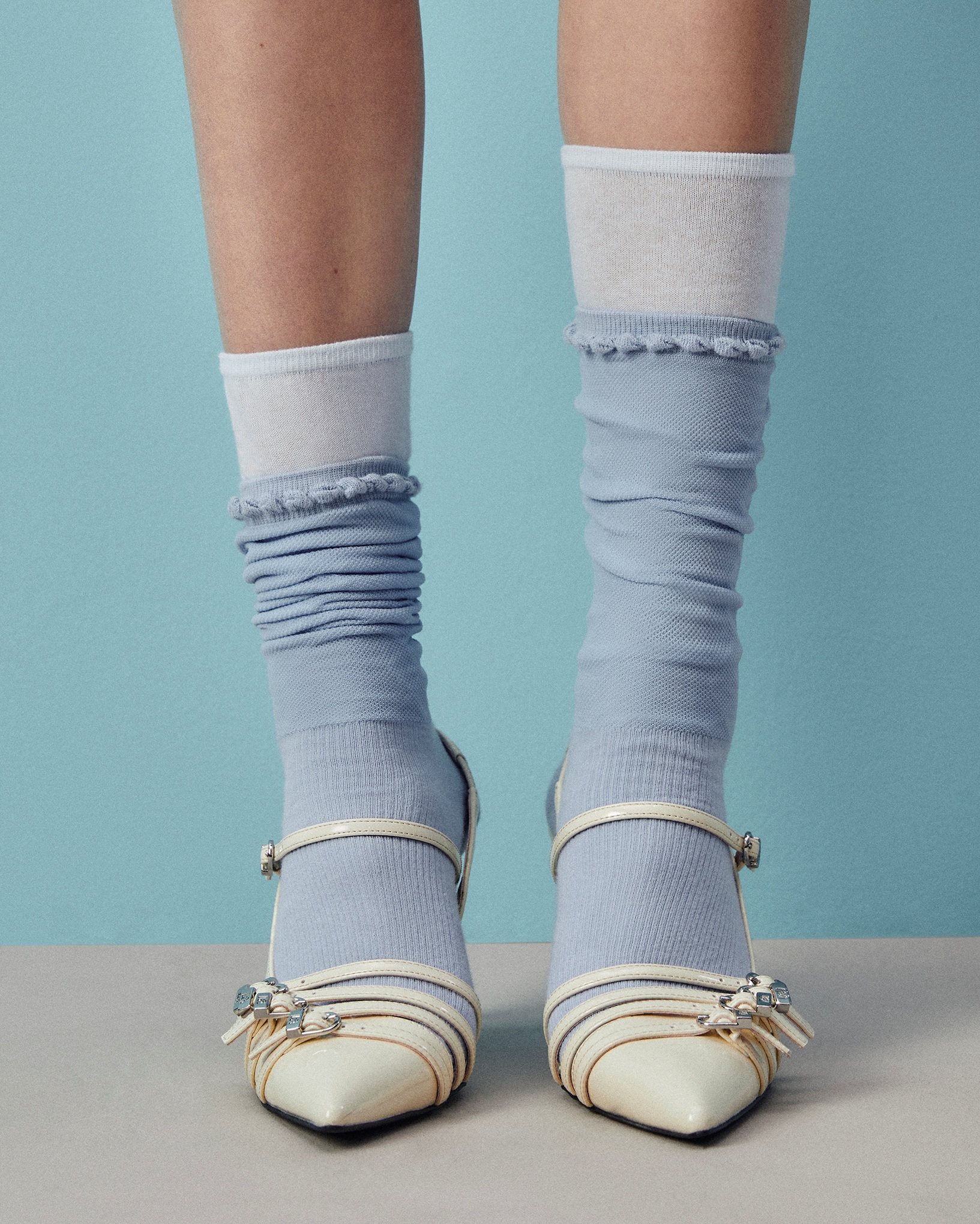 ไฮไลต์ประจำคอลเลกชั่นนี้ อาทิ เดรสยาวพลีทกราเดียน สะท้อนเสน่ห์ของแสงเหนือ กระโปรงปักเลื่อมไล่สี ที่เคลื่อนไหวแวววาวทุกย่างก้าว เดรสสั้นพิมพ์ลายเพนกวิน เติมความสนุกสดใส เดรสผ้านิตชายโค้งอสมมาตร อินสไปร์จากรูปทรงแสงเหนือ และเสื้อยืดออมเบรโอเวอร์ไซส์ สำหรับลุคเบสิกแต่มีดีเทล คอมพลีตลุคด้วยแอคเซสเซอรี่โทนเดียวกัน ทั้ง กระเป๋ารูปปลาโลมา กระเป๋าสะพายสีฟ้าน้ำแข็ง หมวกบักเก็ตขาว–น้ำเงิน รองเท้าบัลเล่ต์สีไอวอรี ส้นสูงสีนู้ด และเครื่องประดับดีไซน์ทรงน้ำแข็งในโทนน้ำตาลอ่อน–เบจ พร้อมเพิ่มประกายความน่ารักสดใสในทุกลุคของสาวลิน อราวด์