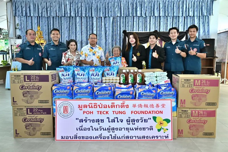 enjoyjam.net » news & activity » news & activity (Moderators: happy, sianbun) » มูลนิธิป่อเต็กตึ๊ง ส่งมอบความสุข และความห่วงใย แจกจ่าย “ชุดของขวัญคลายร้อน” « previous next » Print Pages: [1] Go Down happy on Today at 10:14:50 PM มูลนิธิป่อเต็กตึ๊ง ส่งมอบความสุข และความห่วงใย แจกจ่าย “ชุดของขวัญคลายร้อน” พร้อมรณรงค์และให้ความรู้ด้านการช่วยเหลือฉุกเฉินแก่ประชาชนที่เดินทาง-ท่องเที่ยวในช่วงเทศกาลสงกรานต์ รวมทั้งลงพื้นที่ให้กำลังใจ และมอบสิ่งของเครื่องใช้จำเป็นแก่ผู้สูงวัยในสถานสงเคราะห์ เนื่องในวันผู้สูงอายุแห่งชาติ ประจำปี 2569ระหว่างวันที่ 9-11 เมษายน พ.ศ. 2569 มูลนิธิป่อเต็กตึ๊ง โดย นายวิเชียร เตชะไพบูลย์ ประธานกรรมการมูลนิธิป่อเต็กตึ๊ง ส่งความสุข ห่วงใยประชาชนที่สัญจร เดินทางกลับภูมิลำเนา-ท่องเที่ยวในช่วงเทศกาลสงกรานต์ ซึ่งเป็นการเดินทางในช่วงสภาพอากาศที่ค่อนข้างร้อน – ร้อนมาก รวมถึง ใส่ใจผู้สูงวัยในสถานสงเคราะห์ ฯลฯ จึงมอบหมายให้คณะกรรมการ นำโดย นายสุรพงศ์ เสรฐภักดี กรรมการและรองเหรัญญิก พร้อมด้วย นายอรัณย์ โตทวด ผู้จัดการใหญ่ นางศิริพร กระจ่างหล้า ผู้จัดการฝ่ายสังคมสงเคราะห์ นางสาวดวงชุตา ติยะพจนพรกุล รักษาการผู้จัดการฝ่ายสาธารณภัย นางสาวศุภรัตน์ สมบัติเจริญไทย รักษาการผู้ช่วยผู้จัดการฝ่ายสังคมสงเคราะห์และหัวหน้าแผนกส่งเสริมการศึกษาและอาชีพ และนางสุทิศา ยกสวัสดิ์ ผู้ช่วยผู้จัดการฝ่ายบุคคลและฝึกอบรม จัดโครงการ “ป่อเต็กตึ๊ง คลายร้อน” ครั้งที่ 4 นำทีมลงพื้นที่สถานีกลางกรุงเทพอภิวัฒน์ (บางซื่อ) และ สถานีรถไฟนครปฐม มอบพัดลมมือถือ และยาดม รวม 2,800 ชุด ให้แก่ประชาชนที่สัญจรกลับภูมิลำเนาหรือเดินทางไปยังต่างจังหวัด โดยที่สถานีกลางกรุงเทพอภิวัฒน์ (บางซื่อ) มูลนิธิป่อเต็กตึ๊ง ร่วมกับมูลนิธิเมาไม่ขับ รณรงค์สงกรานต์ปลอดภัย ร่วมใจลดอุบัติเหตุทางถนน จัดบูธกิจกรรมให้ความรู้ในการช่วยฟื้นคืนชีพ (CPR) โดยทีมบรรเทาสาธารณภัย อาสาสมัคร และทีมฝึกอบรม และแจกจ่ายชุดเครื่องเขียนให้กับเด็กและเยาวชน โดยทีมหน่วยแพทย์สงเคราะห์ชุมชน โดยมี นายพิพัฒน์ รัชกิจประการ รองนายกรัฐมนตรีและรัฐมนตรีว่าการกระทรวงคมนาคม เป็นประธานเปิดงาน พร้อมด้วย นายรัชพร ประสงค์ทรัพย์ หัวหน้าแผนกสาธารณภัย นางสาวเนาวรัตน์ วรรณศิริ หัวหน้าแผนกหน่วยแพทย์สงเคราะห์ชุมชน นายยุทธนา ทาโคตร์ รักษาการหัวหน้าแผนกบรรเทาสาธารณภัย นายสุชีพ บุญเส็ง หัวหน้าแผนกอาสาสมัคร นำทีมเจ้าหน้าที่ลงพื้นที่ และอาสาสมัครศิลปินมูลนิธิป่อเต็กตึ๊ง นำโดย นายกวินรัฏฐ์ ยศอมรสุนทร (หยวน-กวินรัฏฐ์) นางสาวอธิชา เทศขำ (เมย์-อธิชา) นางสาวพัชรมัย บุญเลิศกุ